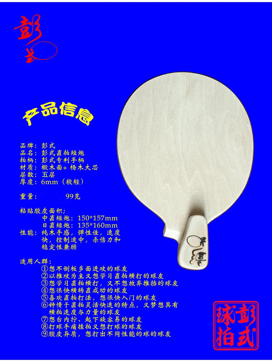 The Peng style straight racket is suitable for players of all ages, including those who are getting older and moving slower, because the Peng style racket can basically stand on the left side of the center table, attack and defend on both sides, smooth in the middle, and have a balance between left and right, controlling the whole game.