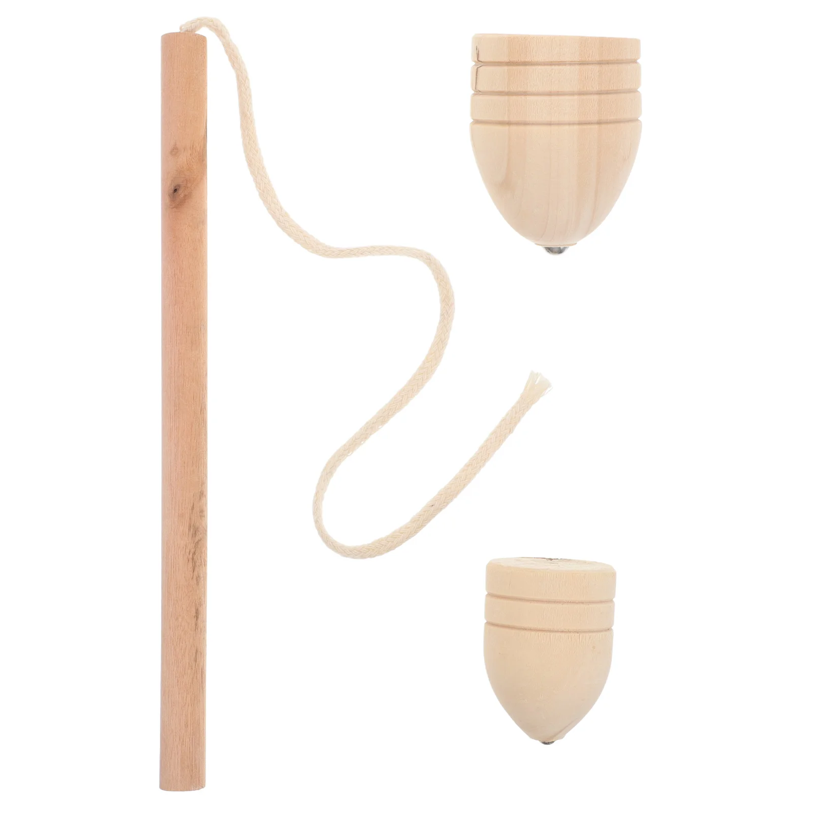 Spinning Top Toy Wooden Gyro Crafts Vintage Toys for Kids Stretchy Lanyard Gyroscope Rotation Fitness Decor