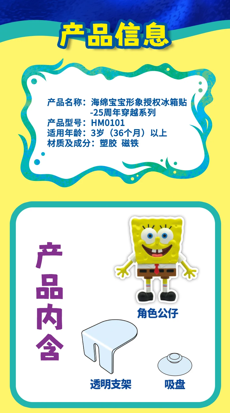 SpongeBob SuqarePants 25th Anniversary Crossing Series Refrigerator Magnet Toy Action Figures Ornaments Collection Kids Gifts