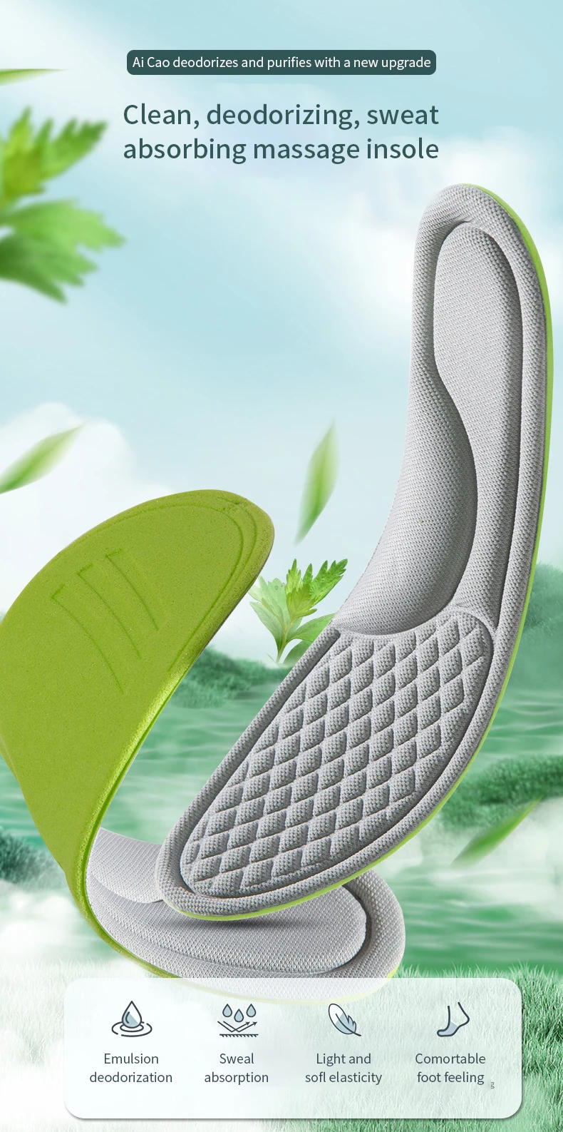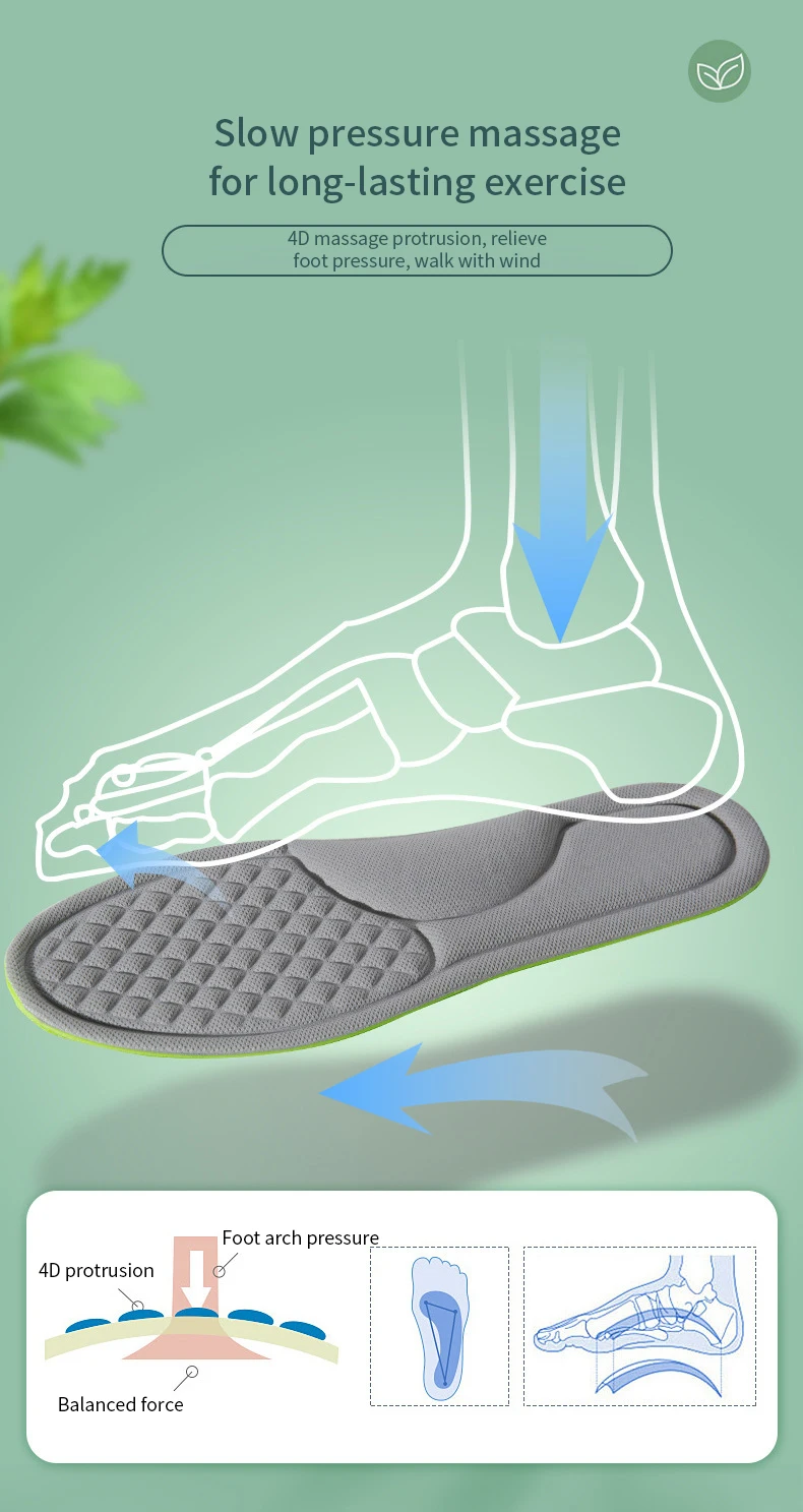 Sports Insoles for Shoes 5D Massage Soft Deodorant Breathable Shock Absorbant Cushion Running Insoles For Feet Men Women