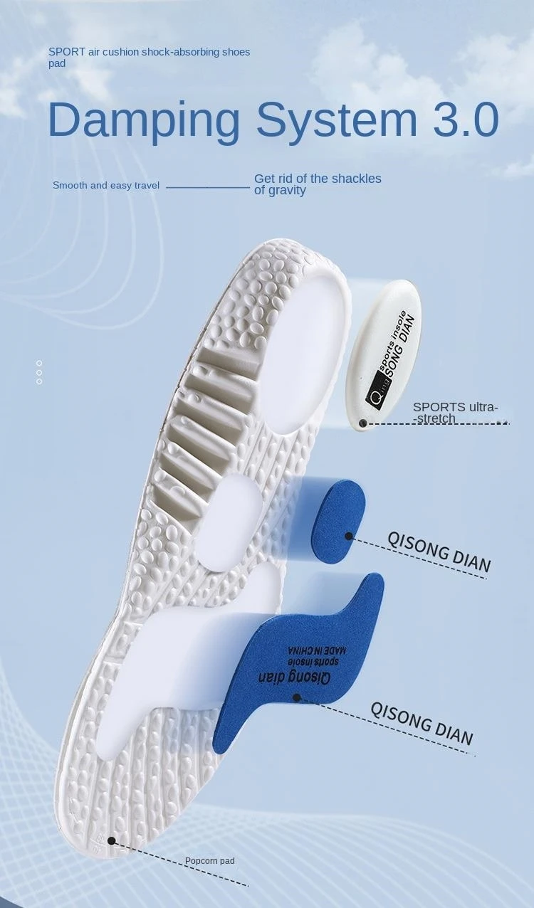 Sports Insoles High Elasticity Shock-Absorbing Sweat-Absorbing Anti-Odor Comfortable Running Insole Support Orthopedic Inserts