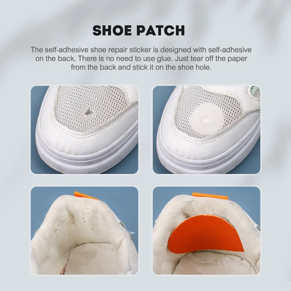 1. The self-adhesive shoe repair sticker is designed with self-adhesive on the back. There is no need to use glue. Just tear off the paper from the back and stick it on the shoe hole.