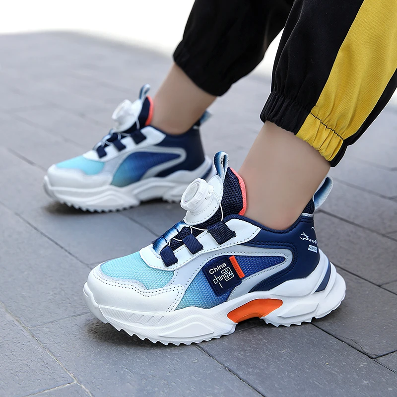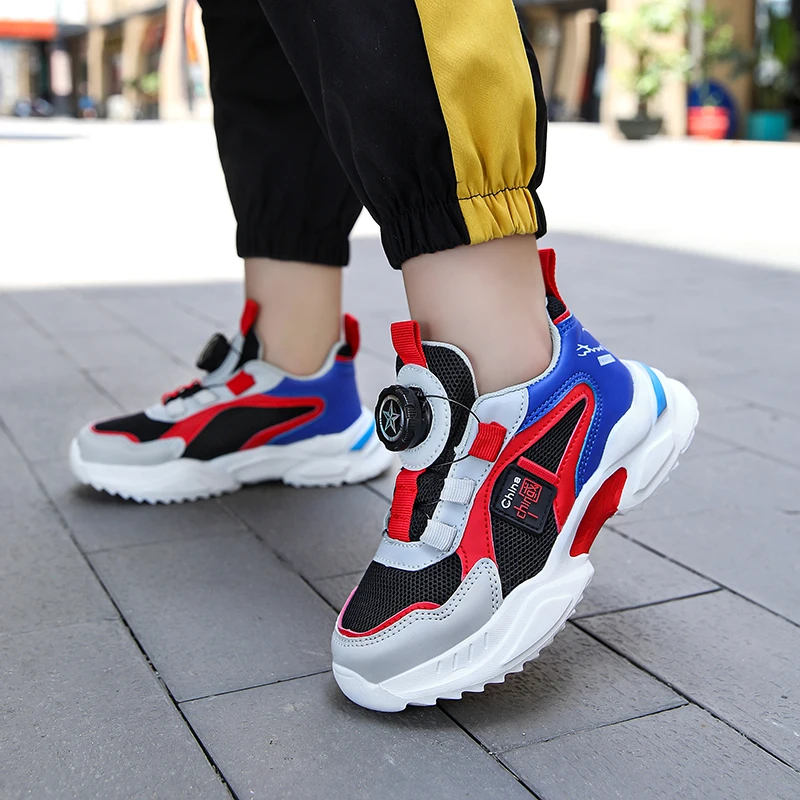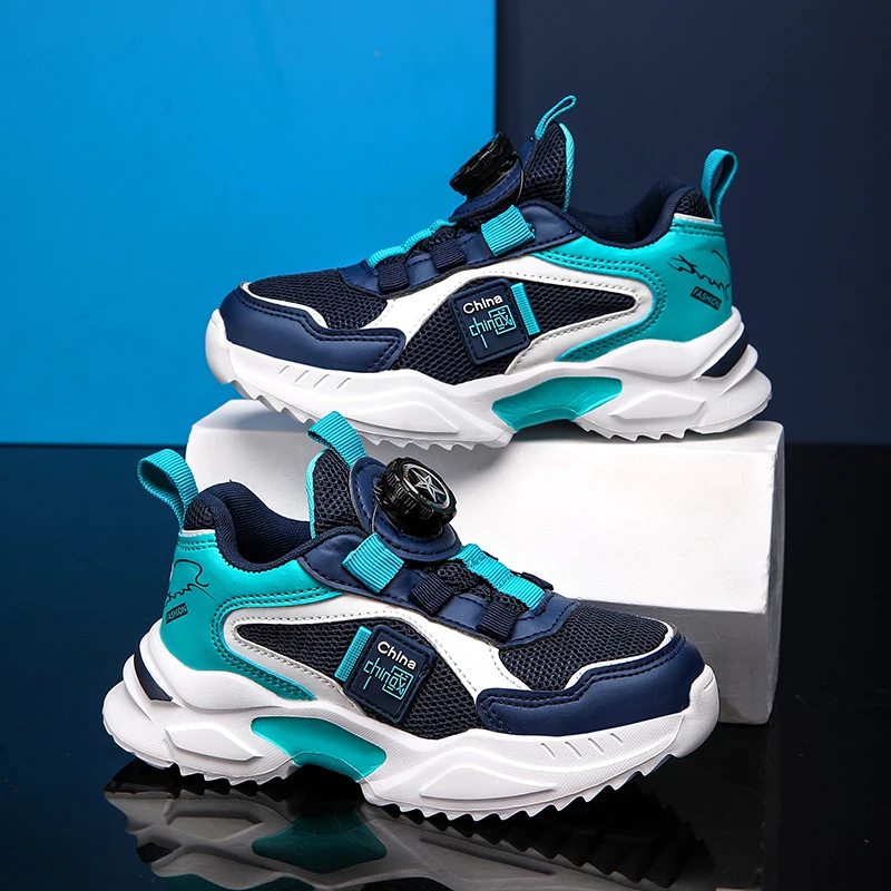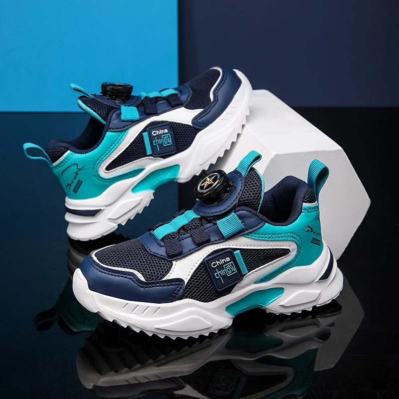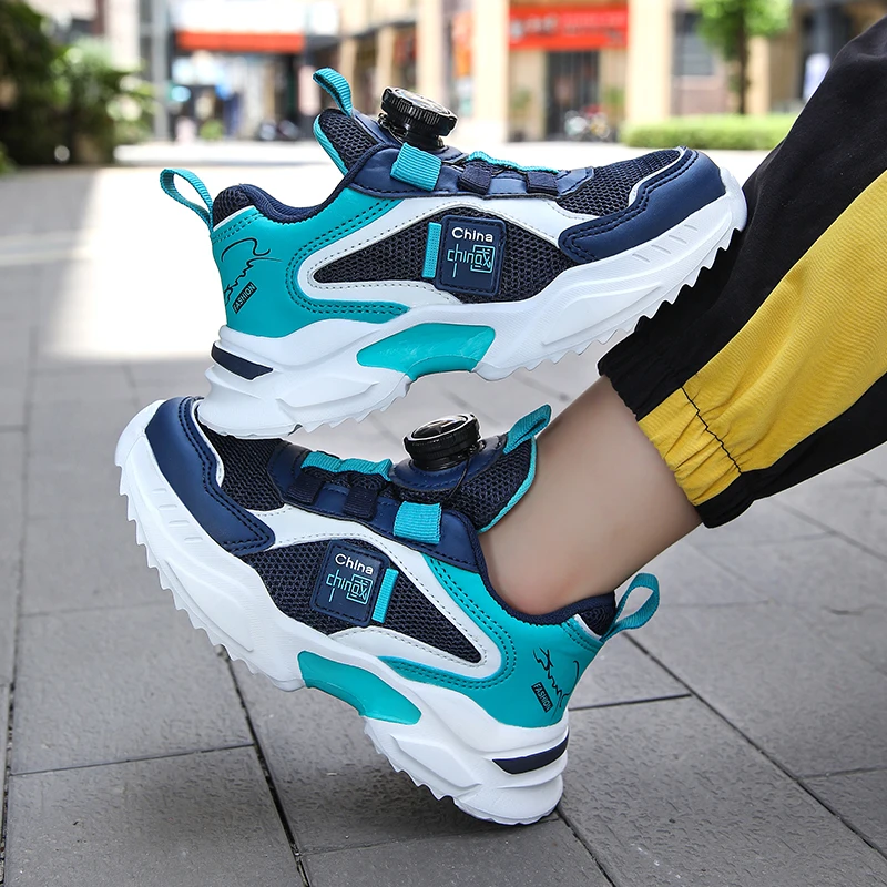 Spring and Autumn Boys’ Shoes Rotating Button Children’s Sports Shoes Popular Casual Shoes Breathable New Outdoor Running Shoes