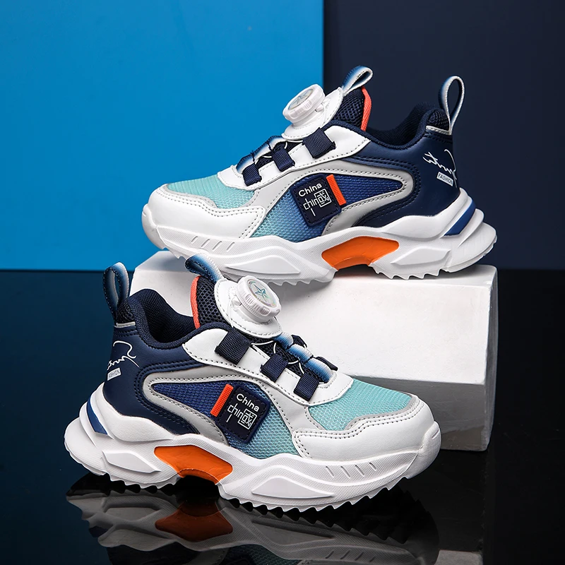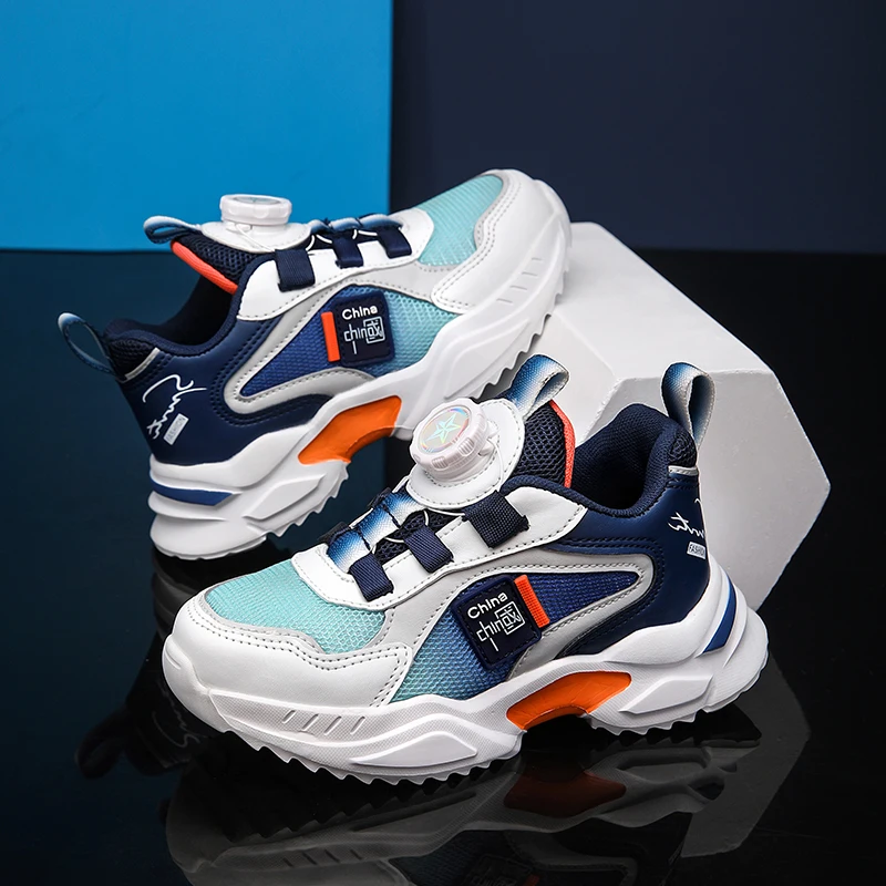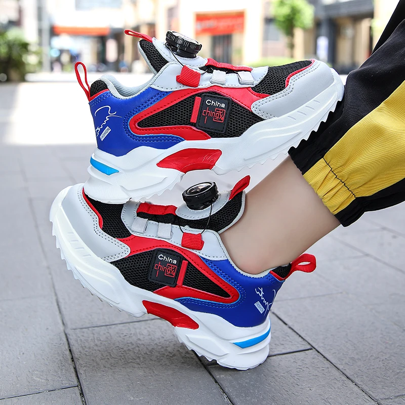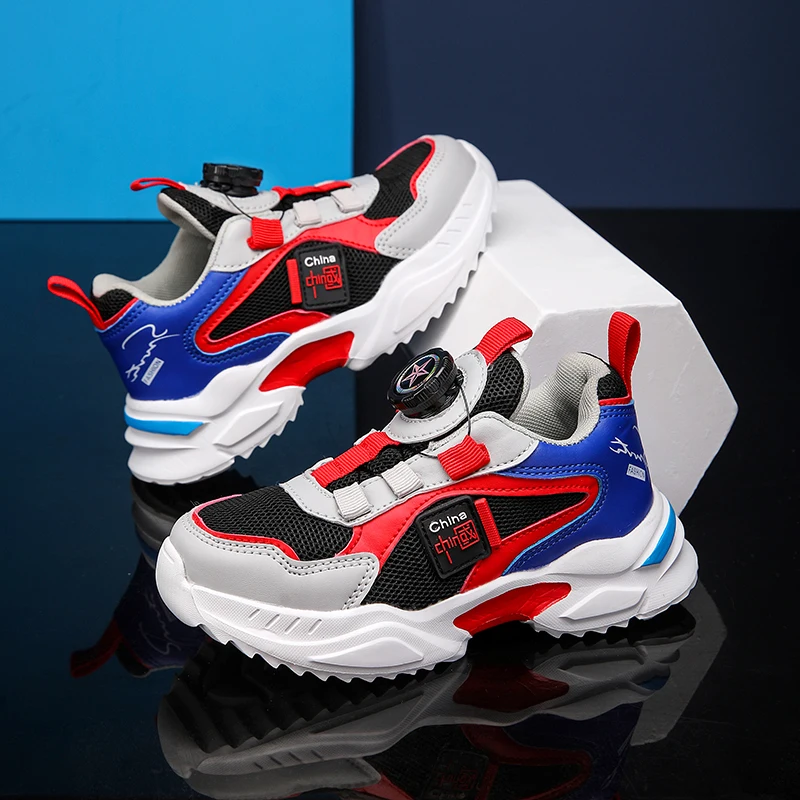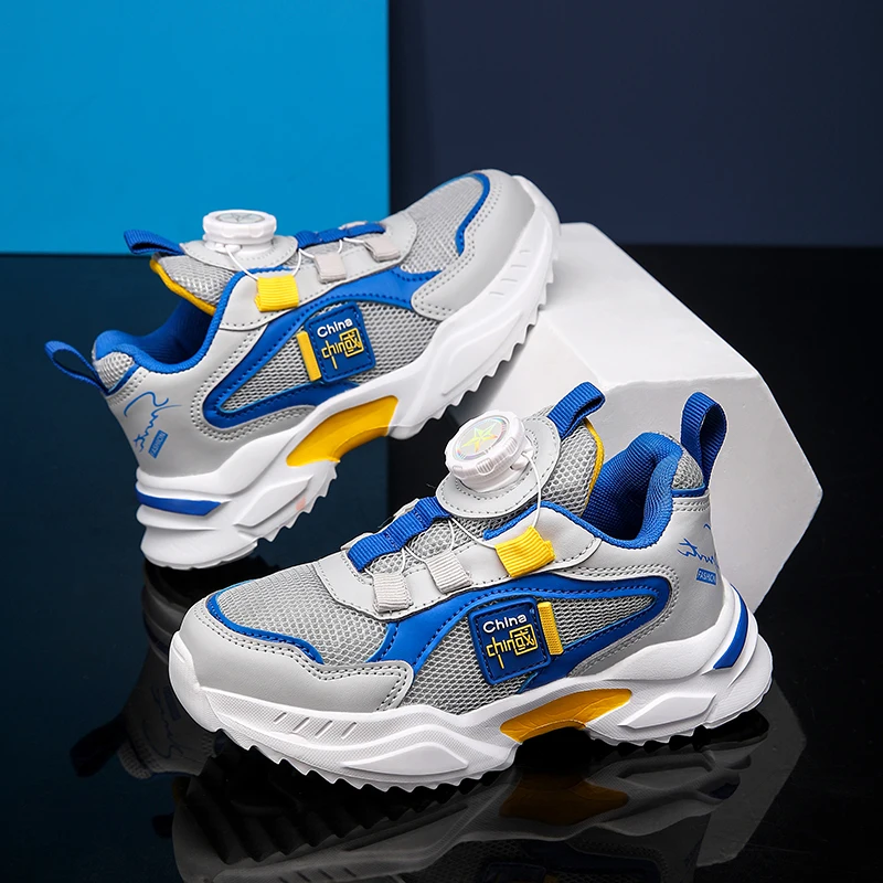 Spring and Autumn Boys’ Shoes Rotating Button Children’s Sports Shoes Popular Casual Shoes Breathable New Outdoor Running Shoes