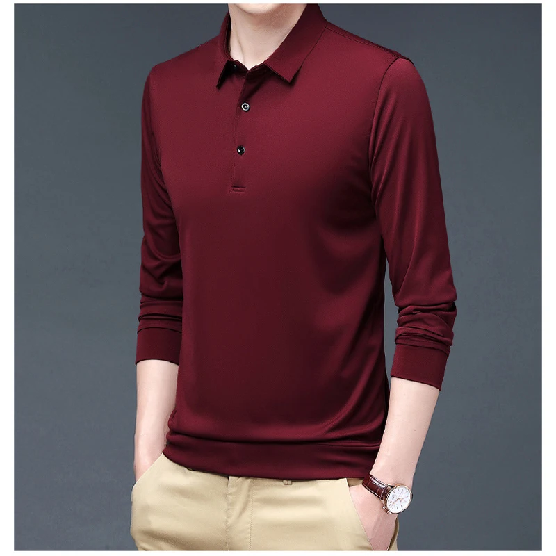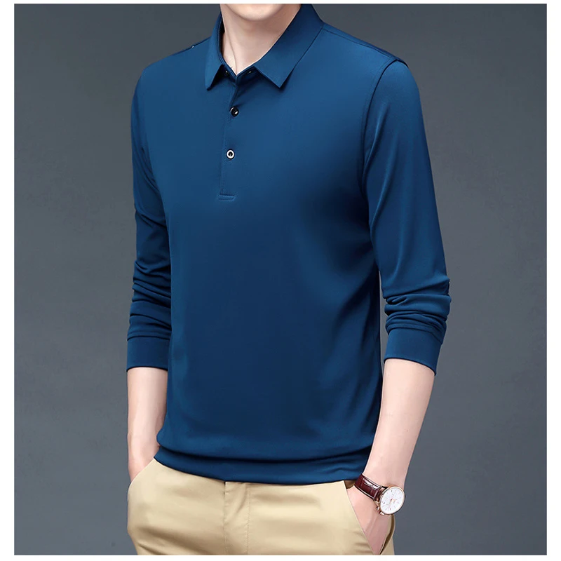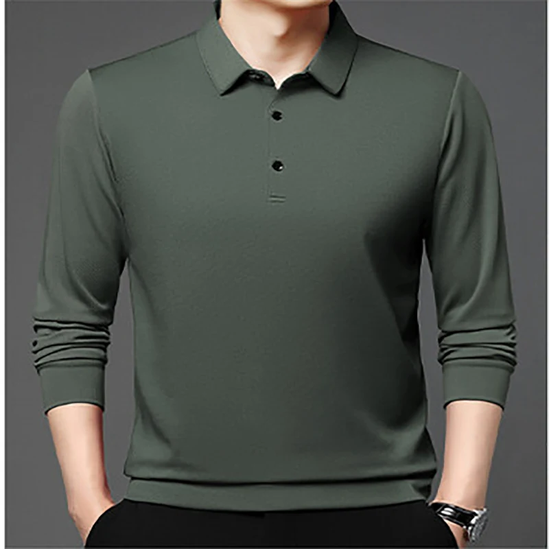 Spring and Autumn New Long Sleeved Lapel Polo Golf T-shirt Business Casual Simple Men’s Top