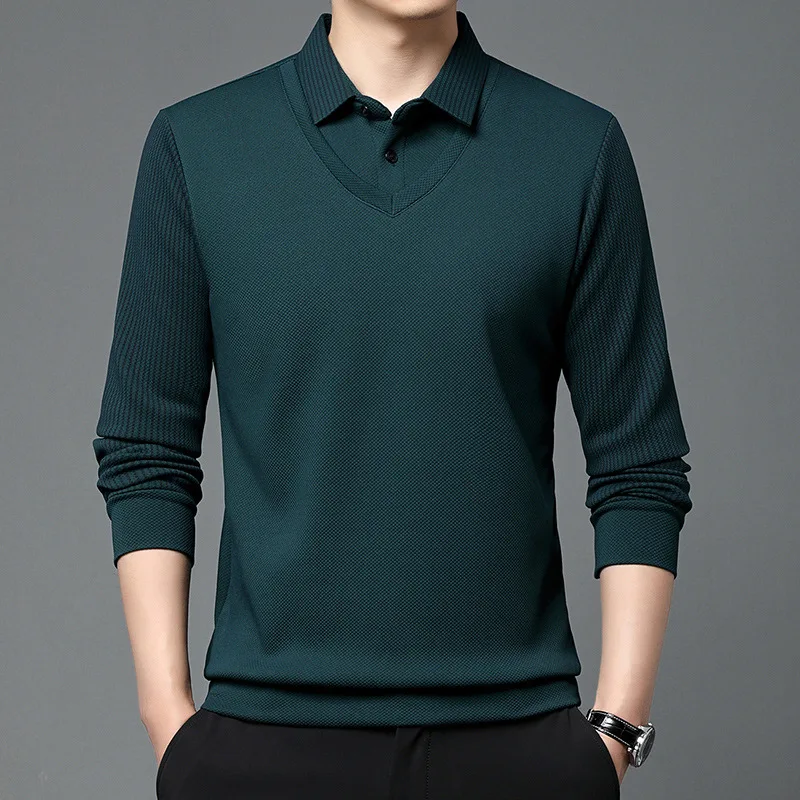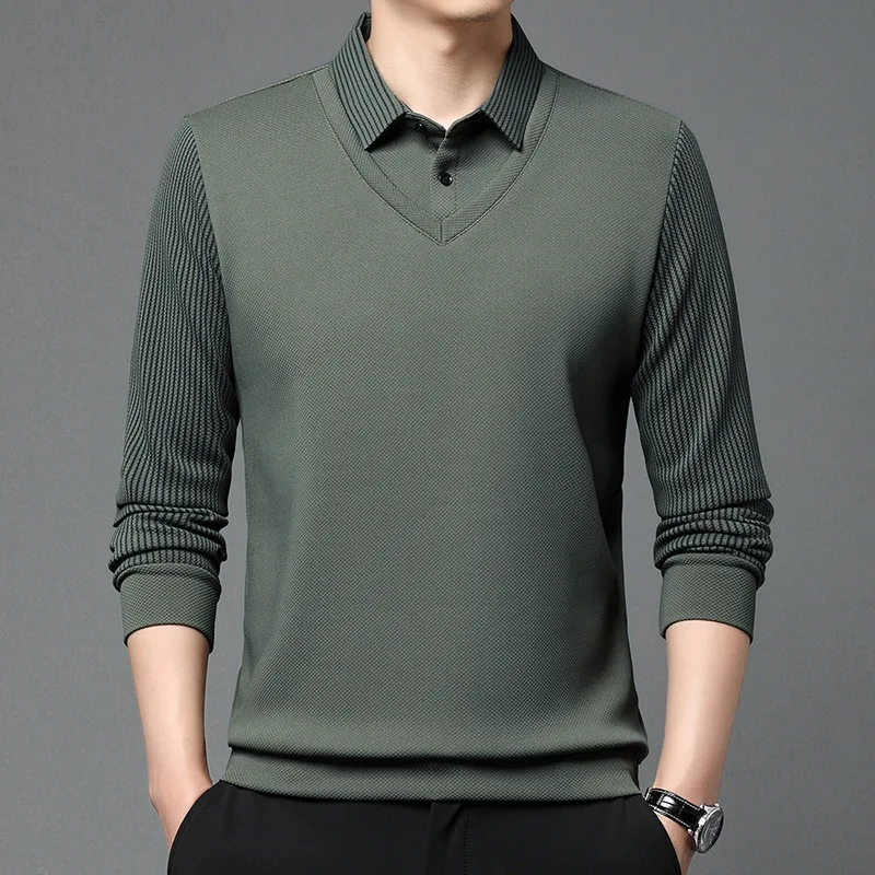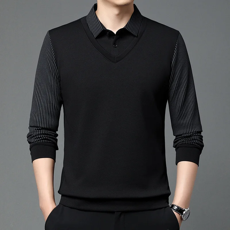 Spring Autumn Polo Shirt Long Sleeved for Fashion Men’s Clothing Casual Wear Two-piece Striped Collar Simplicity Trend Chic Tops