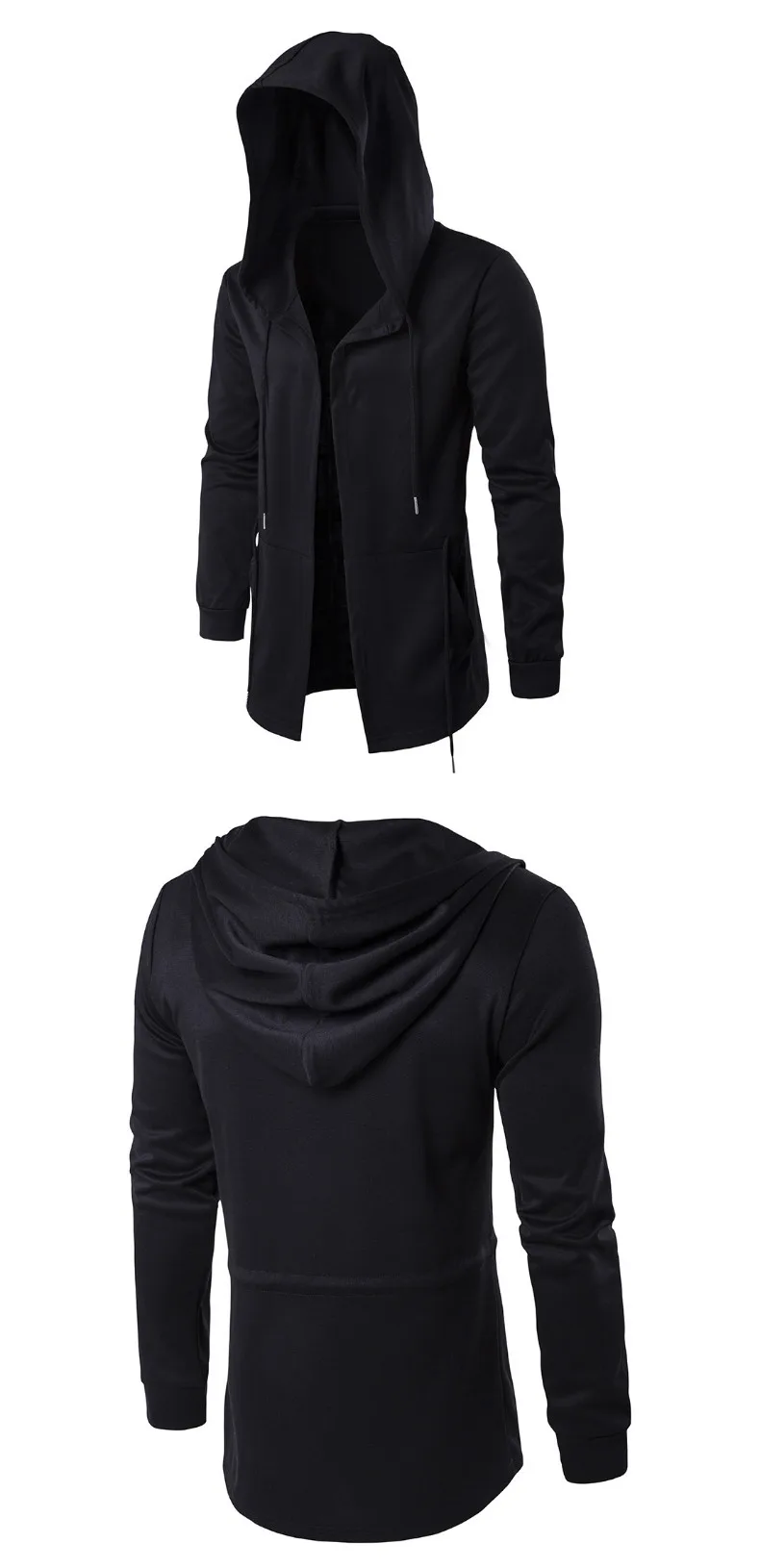 Spring Fashion Men’s Hooded Sweatshirts Hip Hop Black Gown Mantle Hoodies Jacket Long Cloak Man Coat Windbreaker Outerwear