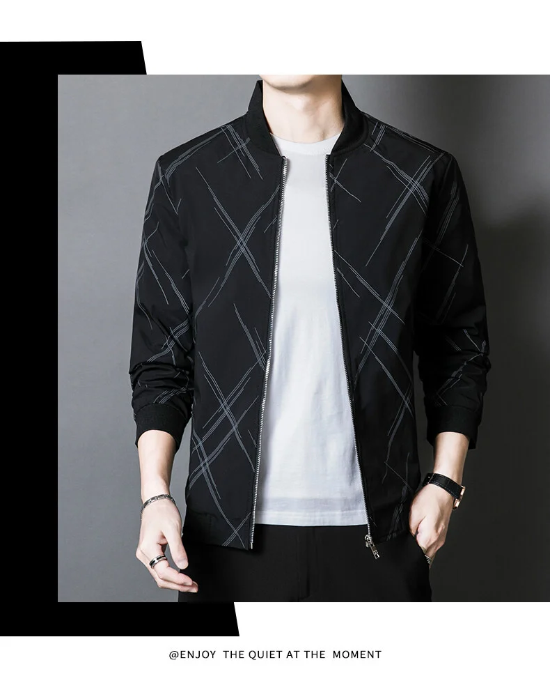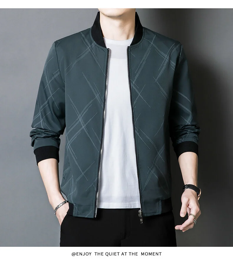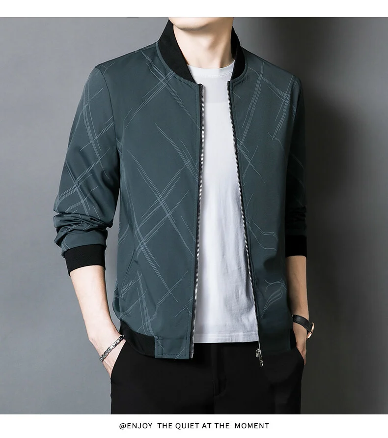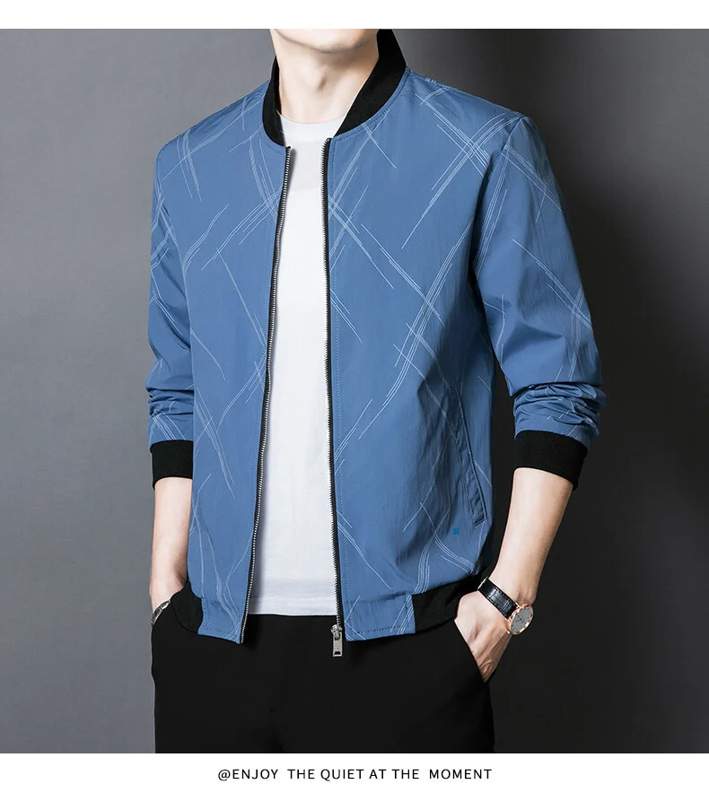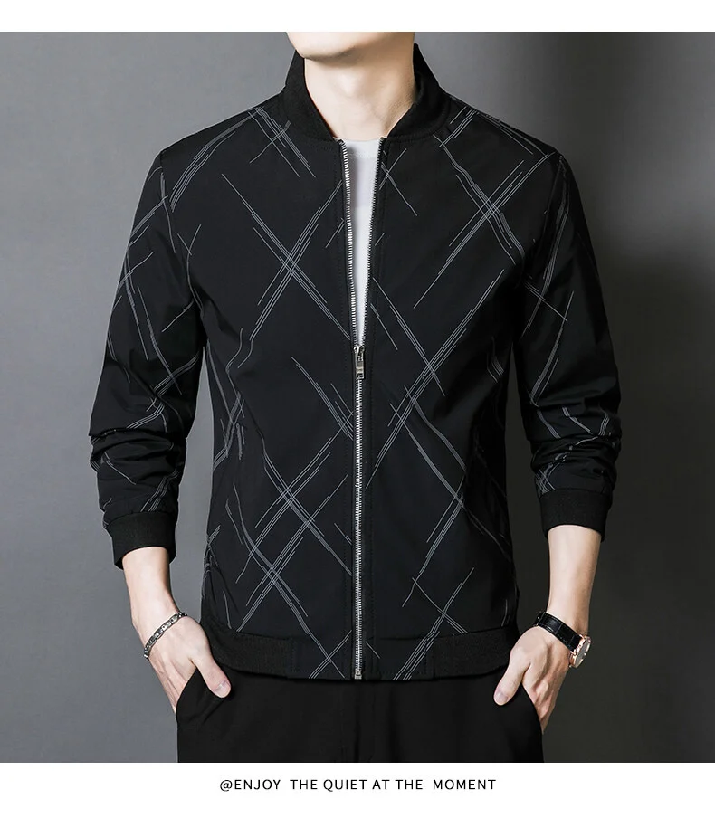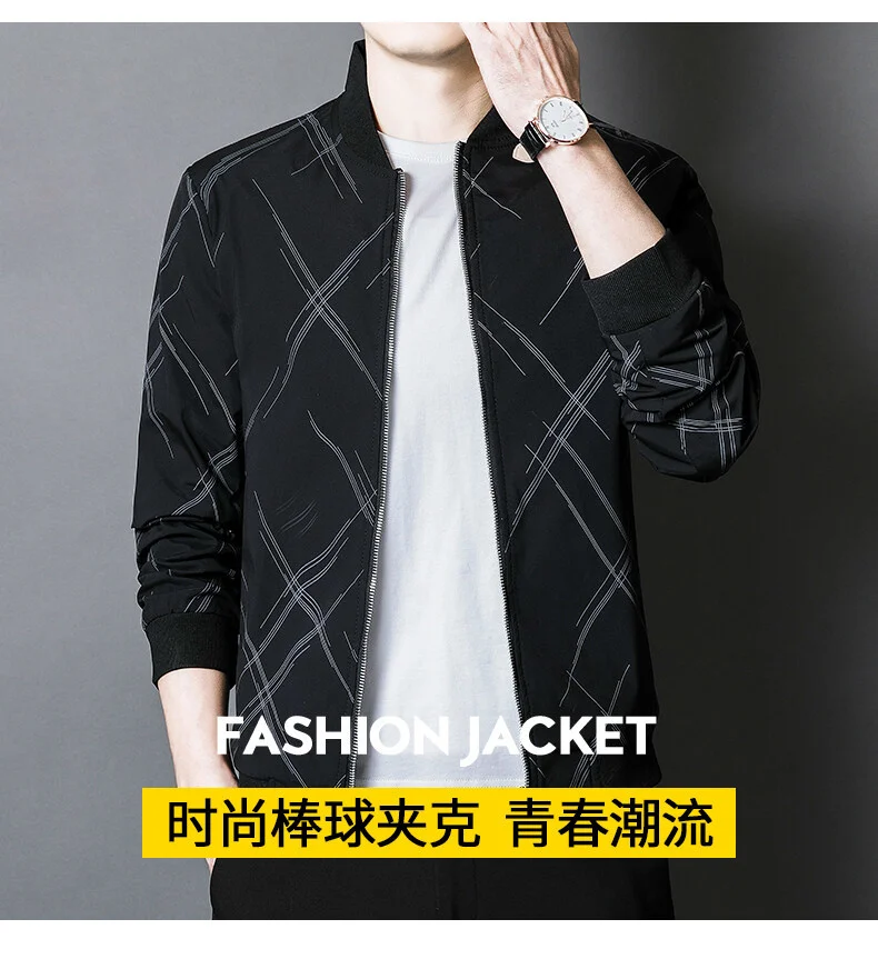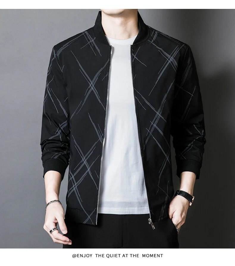 Spring Jacket Men’s Korean-style Fashionable Printed Baseball Suit Coat Classic Business Slim-fit Cargo Jacket Brand Clothing