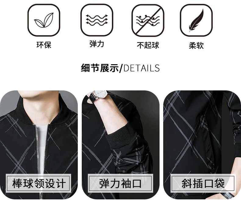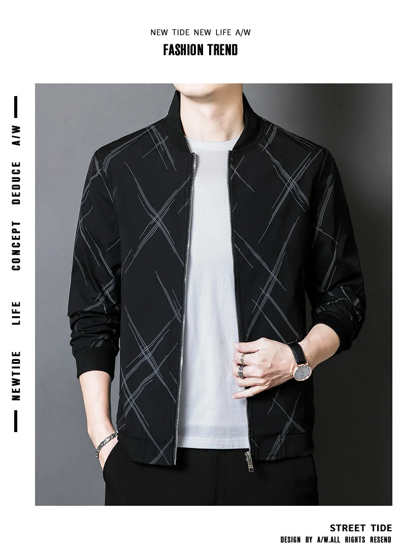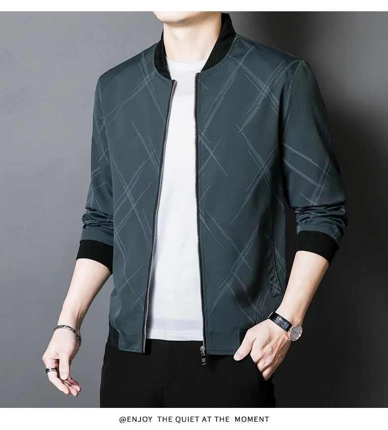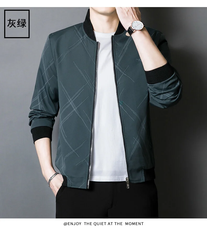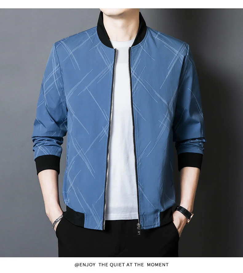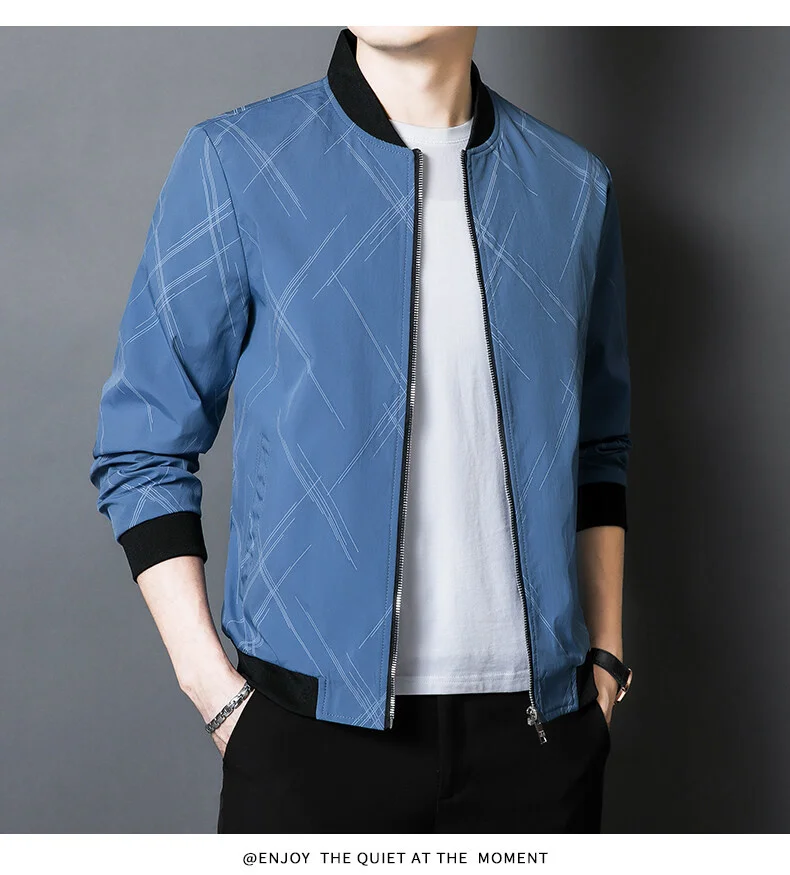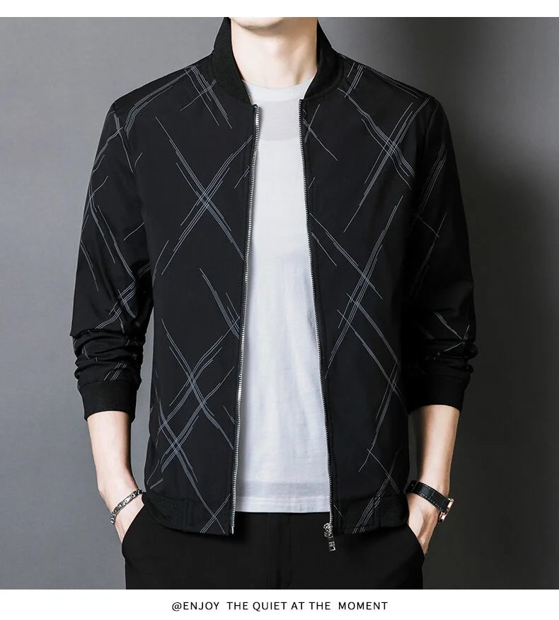 Spring Jacket Men’s Korean-style Fashionable Printed Baseball Suit Coat Classic Business Slim-fit Cargo Jacket Brand Clothing
