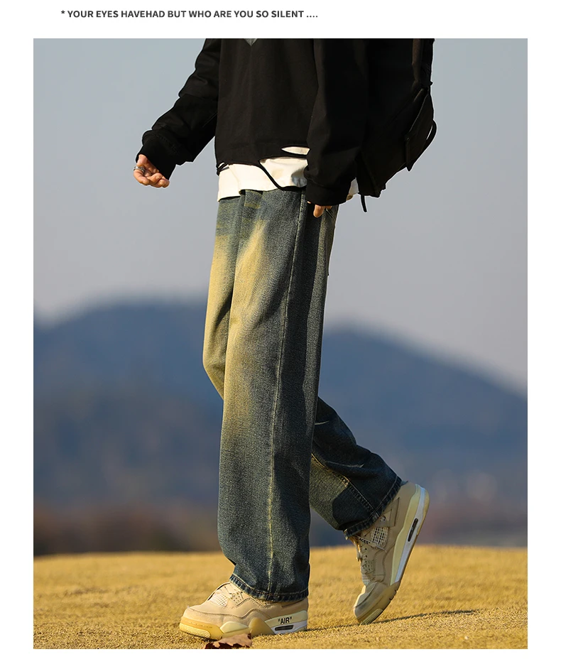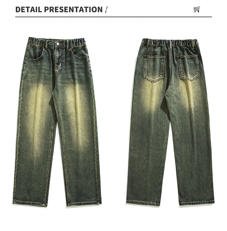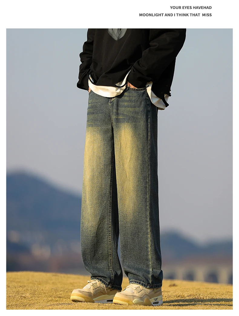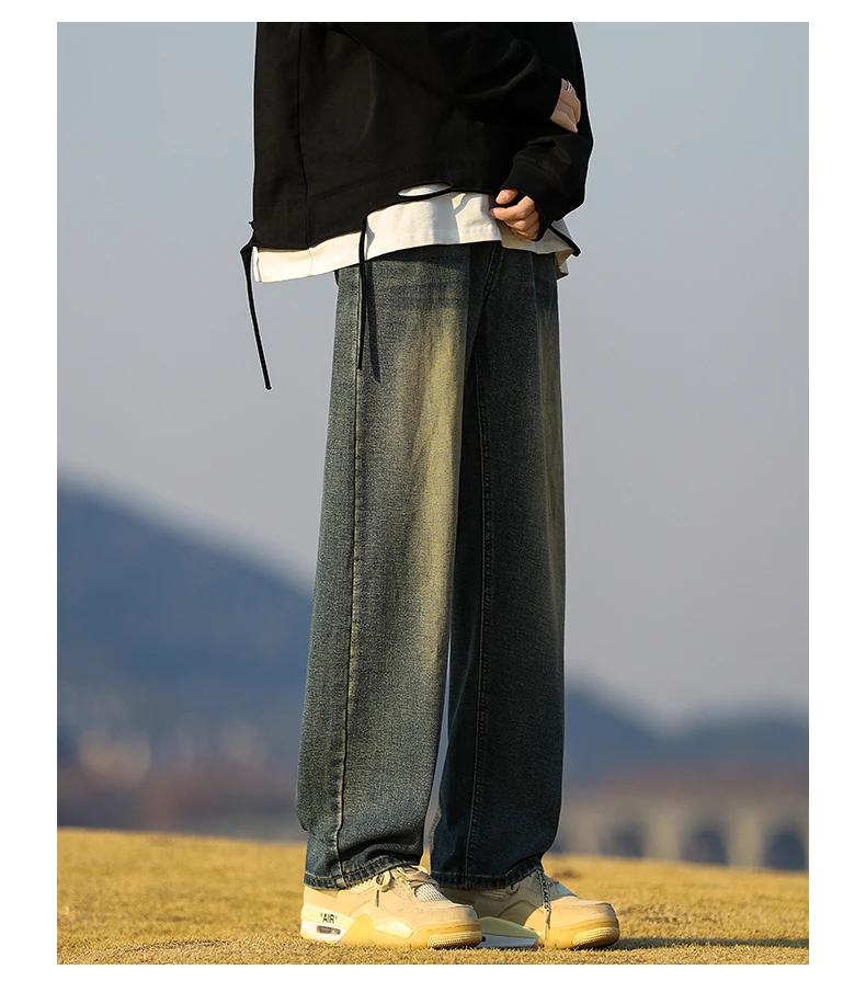 Spring Man New Harajuku Baggy Jeans Fashion Retro High Street Hip Hop Pants Straight Wide Leg Y2K Brand Clothing