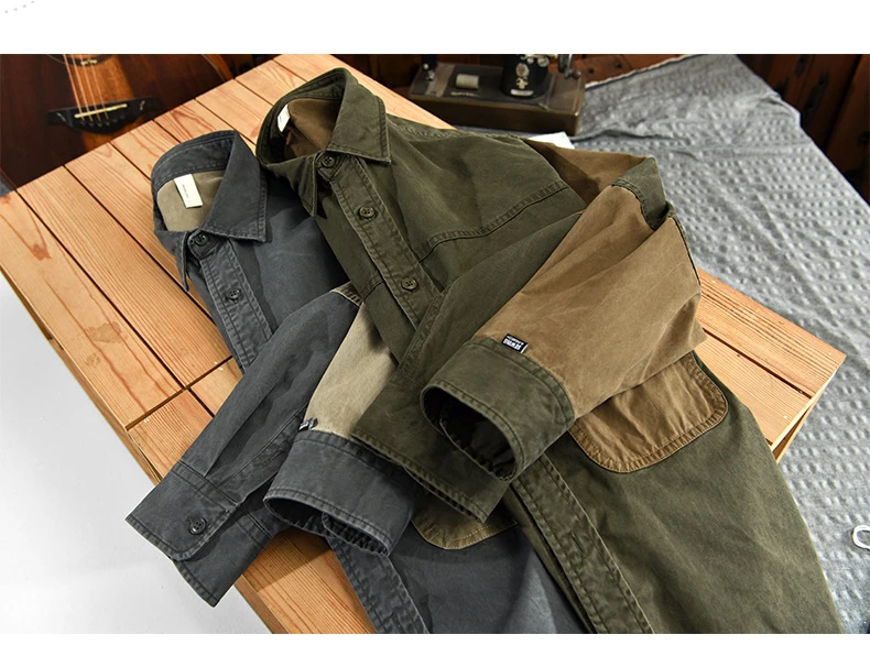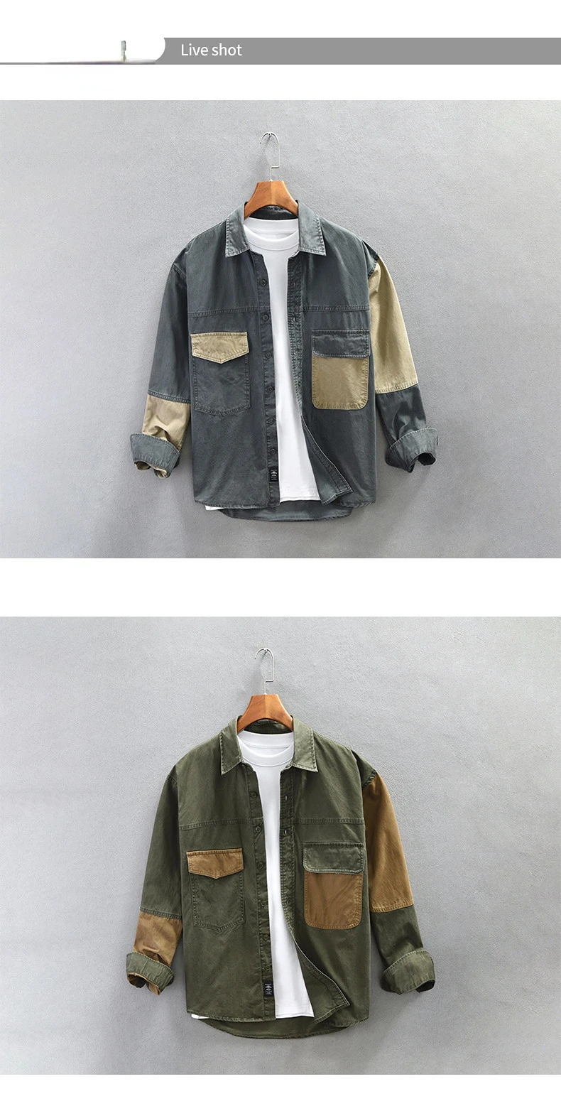Spring New Cargo Casual Patchwork Shirt Men Big Pockets 100% Cotton Four Seasons Men Clothing Oversize AZ781