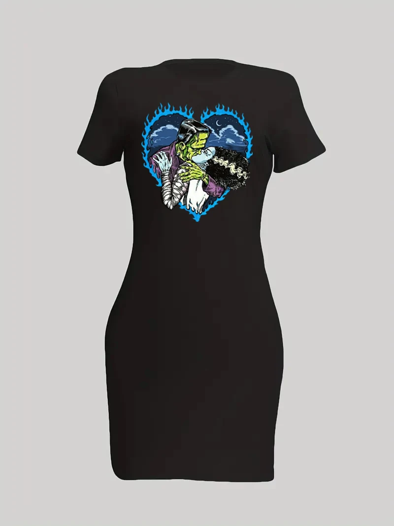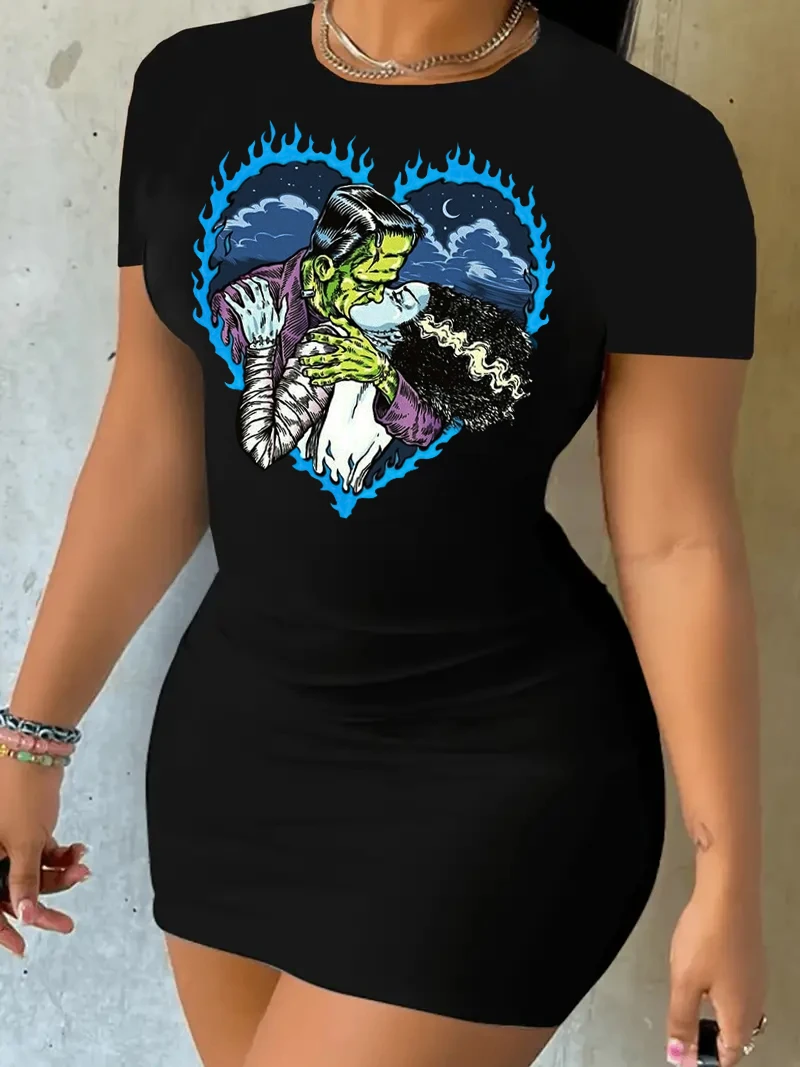 Spring/Summer Chic Bodycon Dress Love Heart Cartoon Print dresses on offer clearance free shipping Short dresses fashion summer