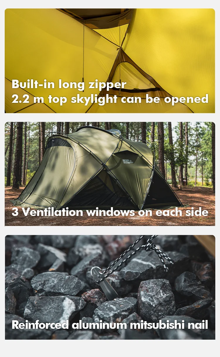 Naturehike Dunes 10.9 Outdoor Camping 1 Bedroom 1 Hall Ridge Tent 75D Waterproof Double Layer Mesh Yarn Tent With Chimney Mouth