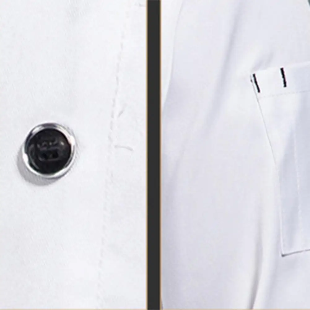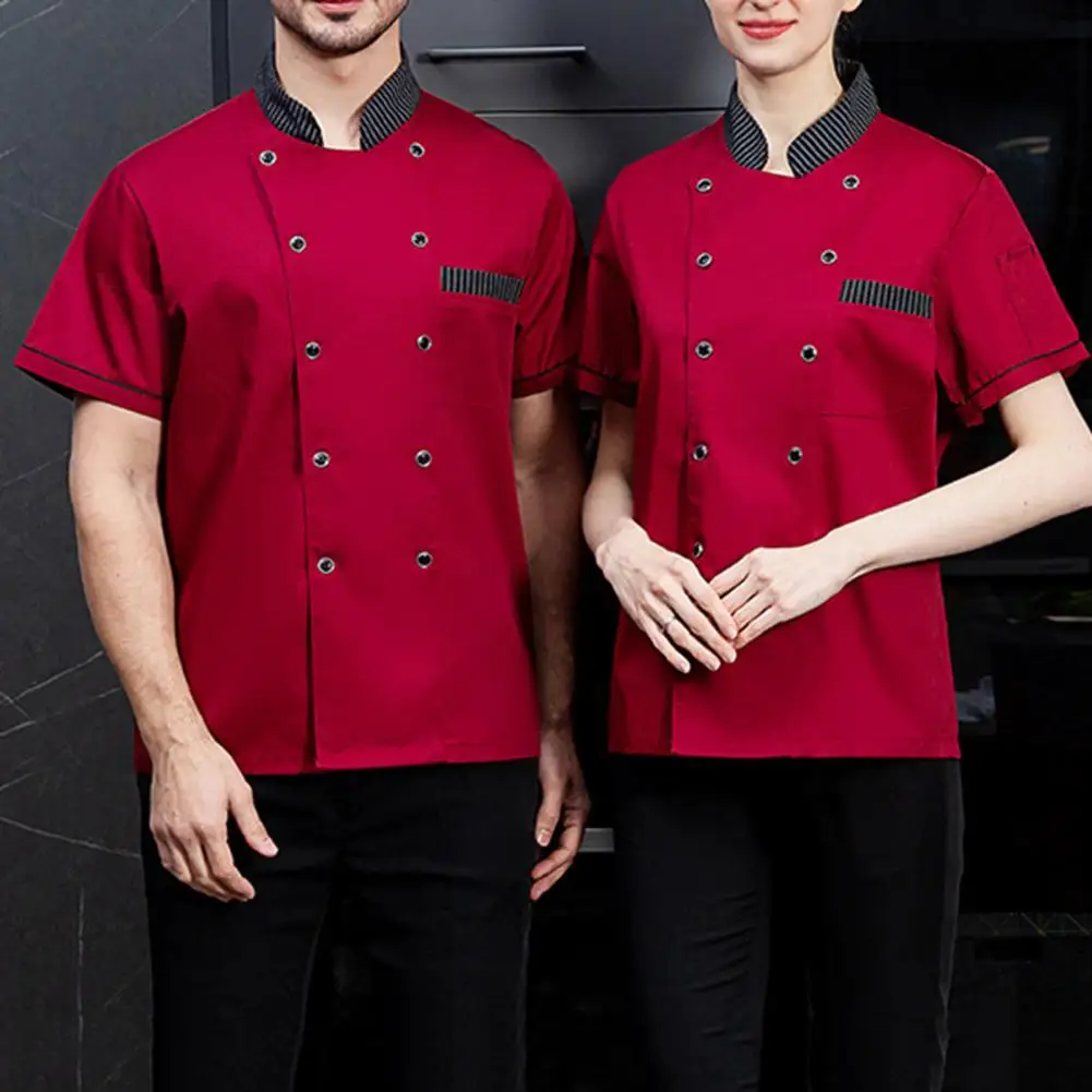 Hotel Chef Clothes Stand Collar Single Breasted Short Sleeve Kitchen Uniform Cotton Blend Chef Shirt Restaurant Cooking Clothes