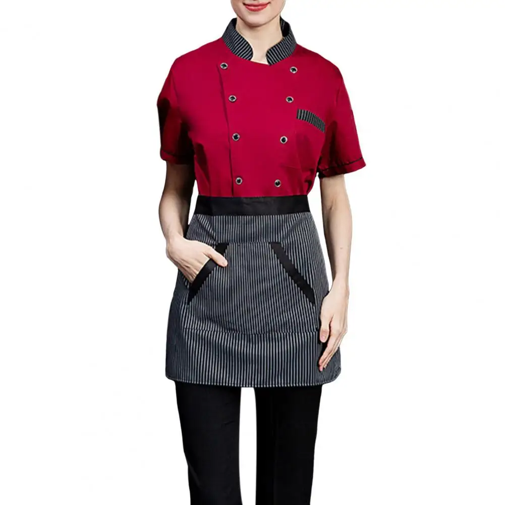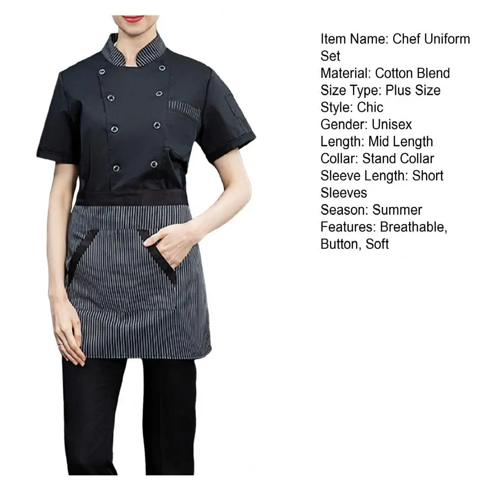 Stain-resistant Chef Jacket Professional Chef Uniform Set with Short Sleeve Shirt Apron Breathable for Restaurant