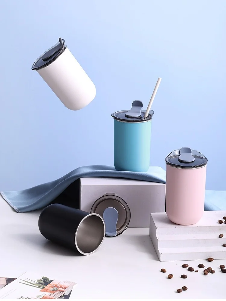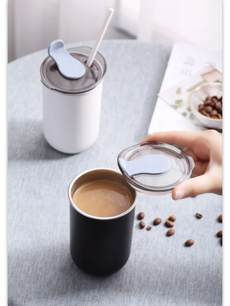 Stainless Steel Coffee Cup 300ML Mug with Lid Simple Insulated Coffee Mug Thermal Bottle Heat-resistant Thermos Mug Drinkware
