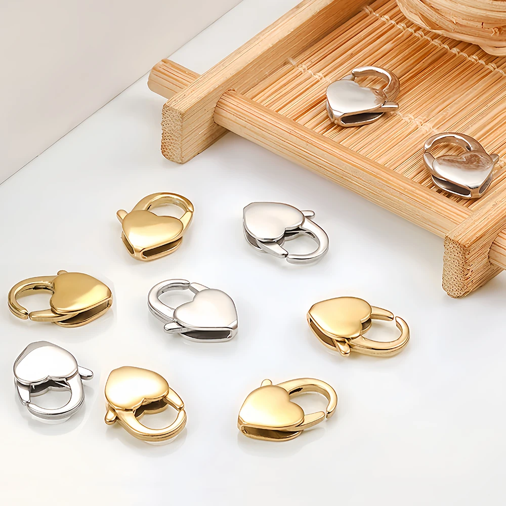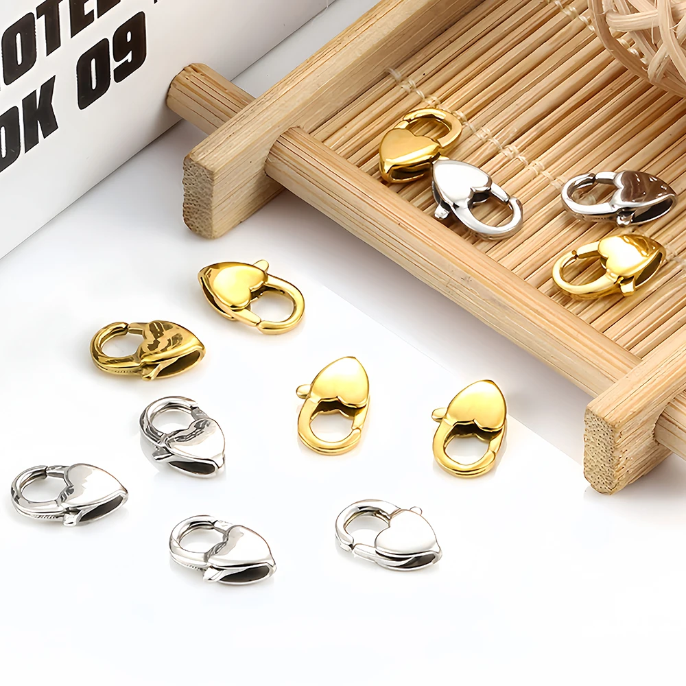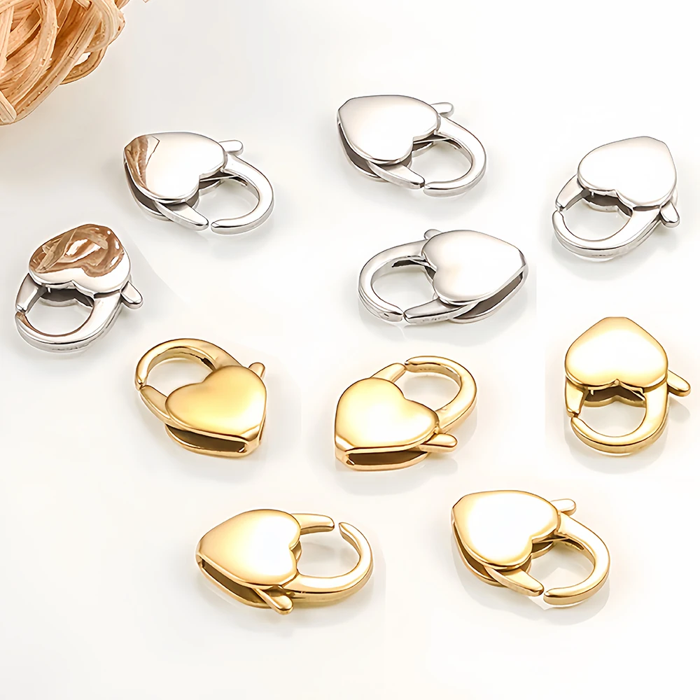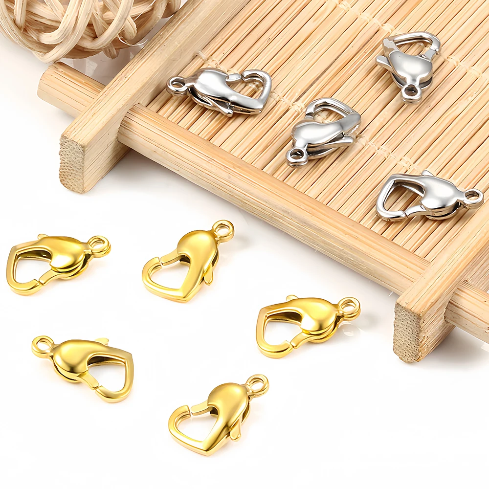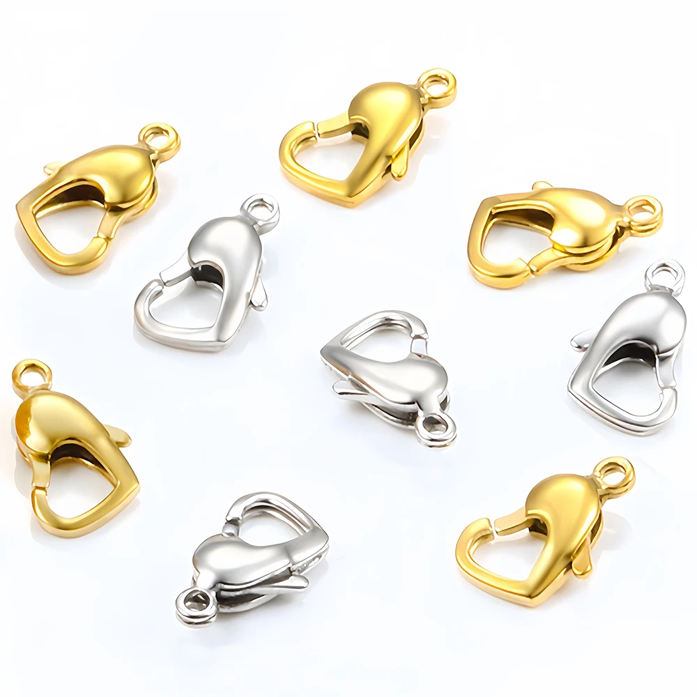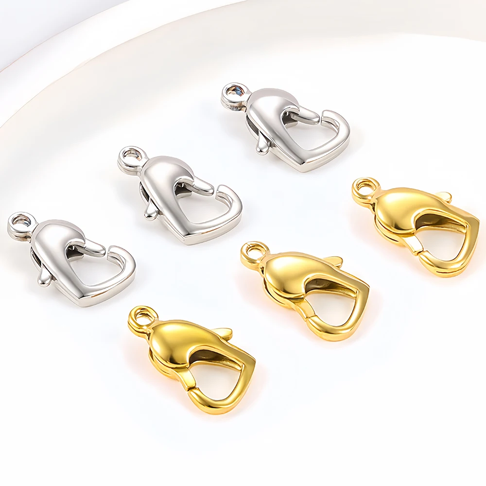 Stainless Steel Lobster Clasps Hook Connectors Heart Shape for DIY Jewelry Necklaces Bracelets Making Findings Accessories