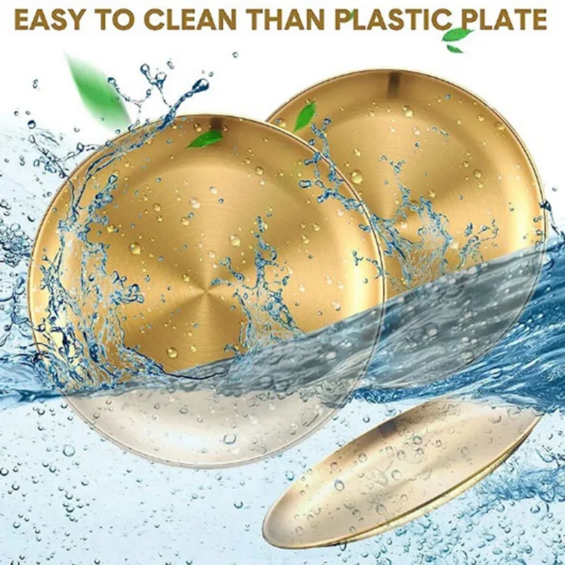[SHATTERPROOF]Unbreakable stainless steel dinner plates won’t turn into pieces hurting you, Smooth round edges without rough spot won’t hurt your soft skin , Appropriate size and lightweight are easy handle by hands.Round dinner plates are made of high quality stainless steel with excellent rust resistance, BPA free and non-toxic, easy to care and durable.