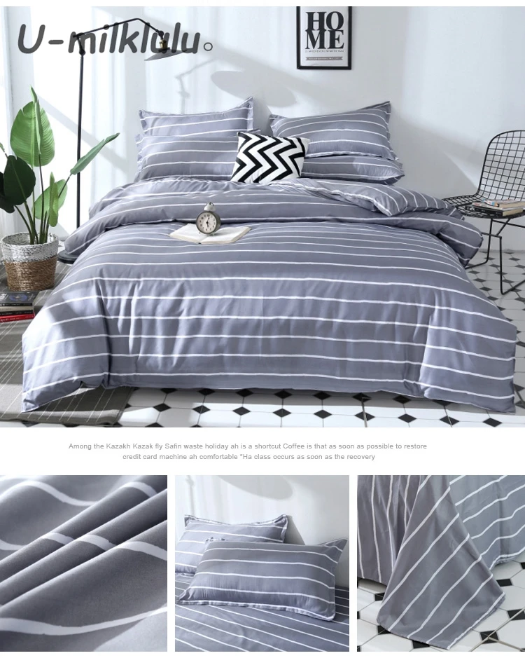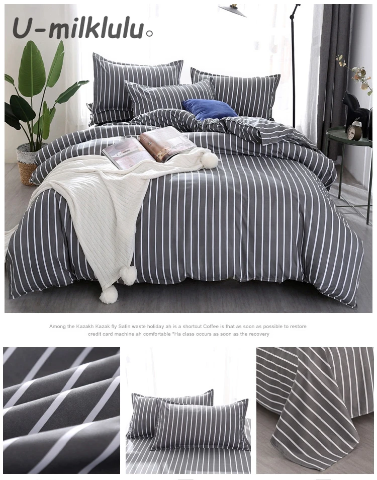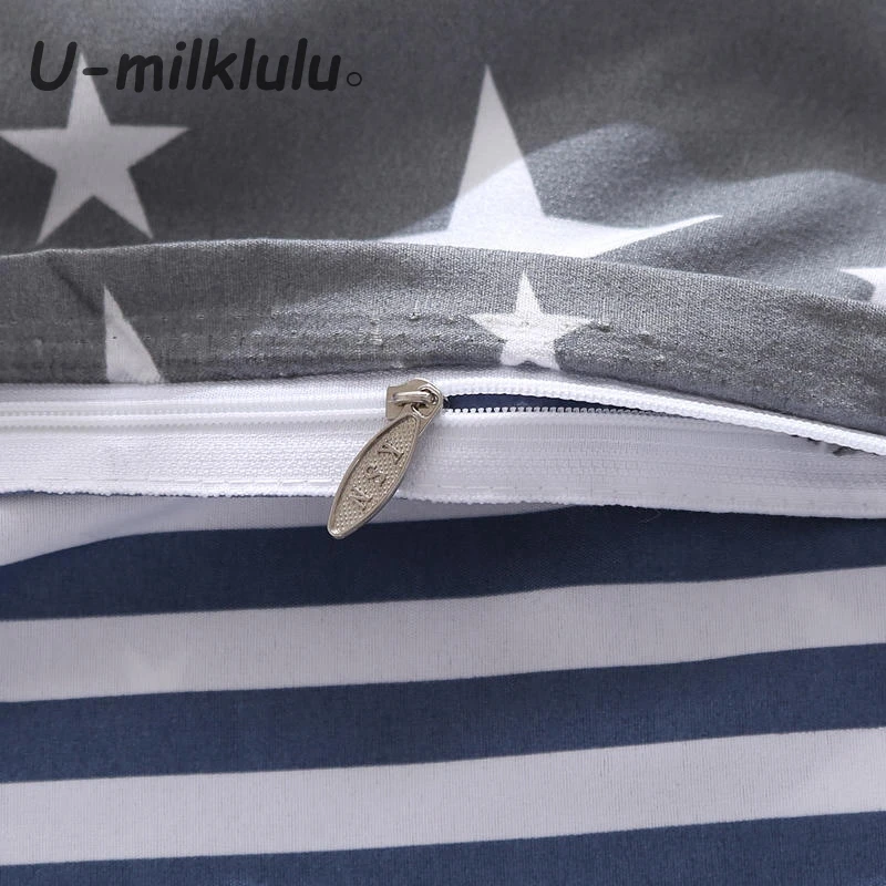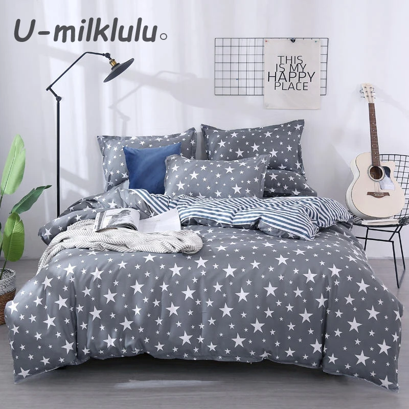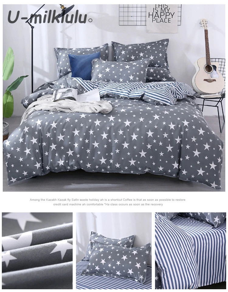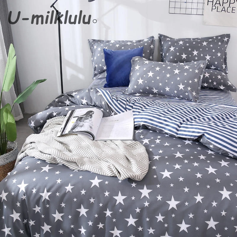 Star Printed Bedding Set, Nordic Sheet Set, Gray Black Duvet Cover Single, Double, Queen, King Size Elastic Bed, Pillowcases, 4P