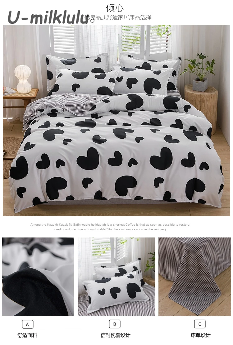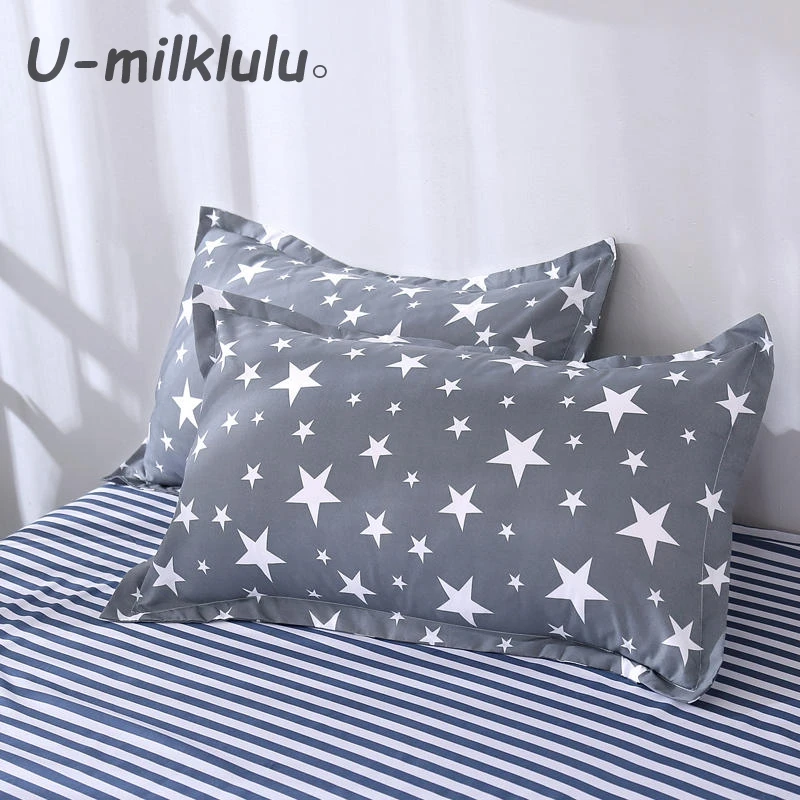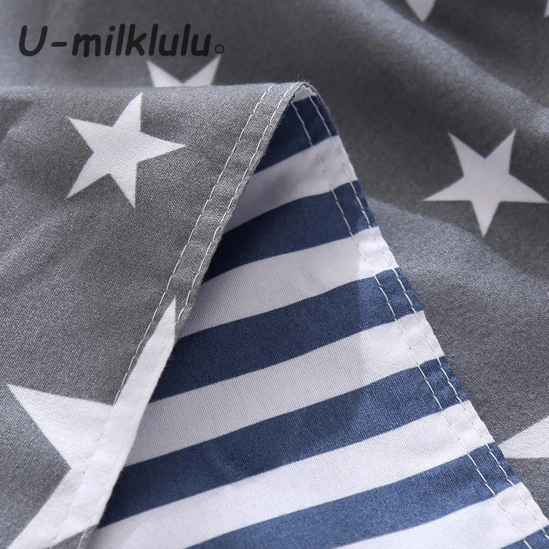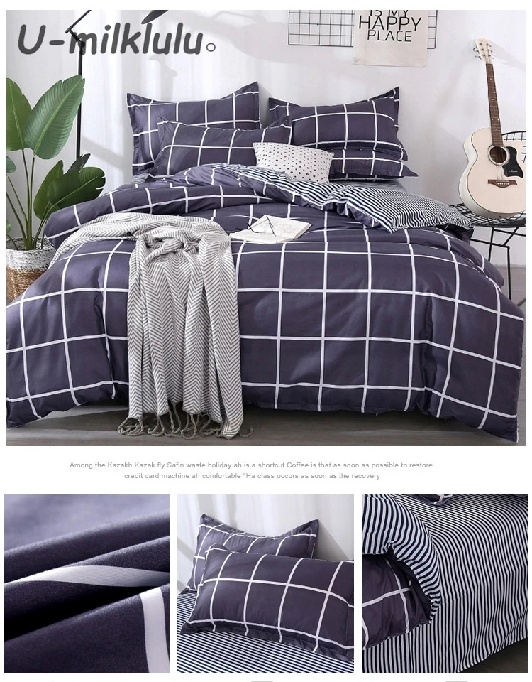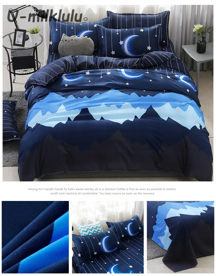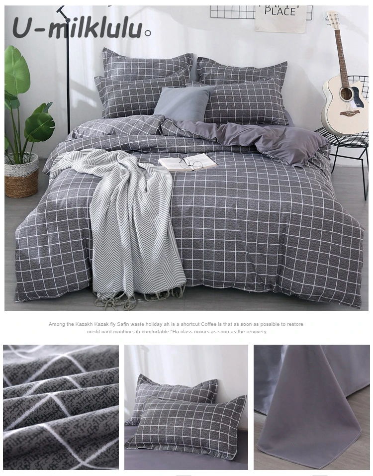 Star Printed Bedding Set, Nordic Sheet Set, Gray Black Duvet Cover Single, Double, Queen, King Size Elastic Bed, Pillowcases, 4P