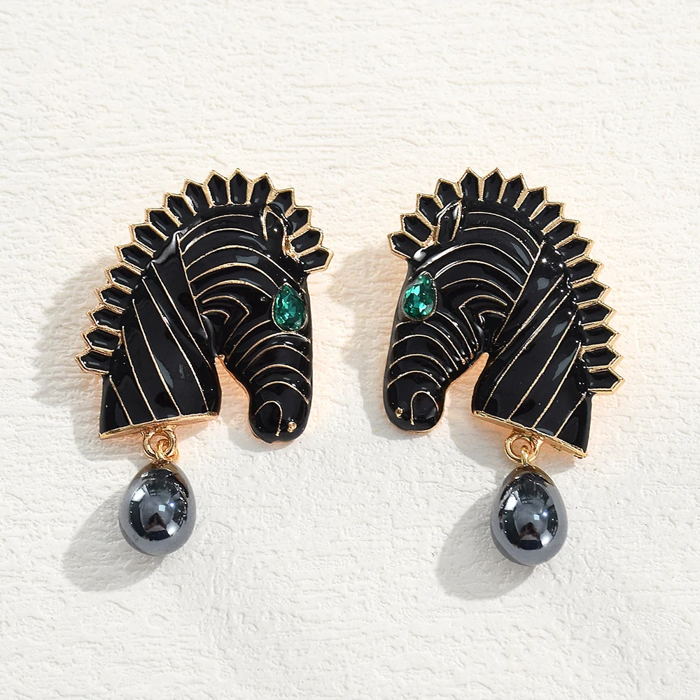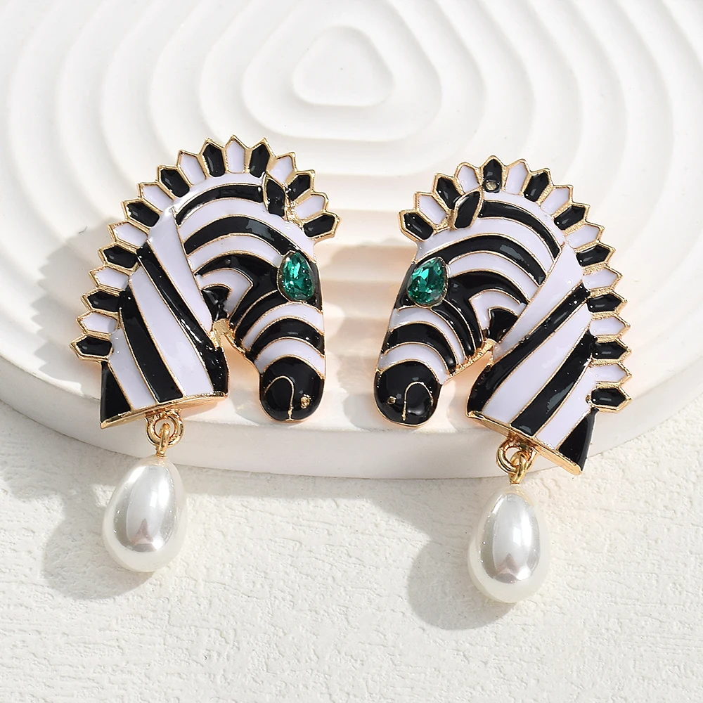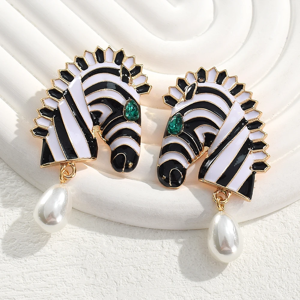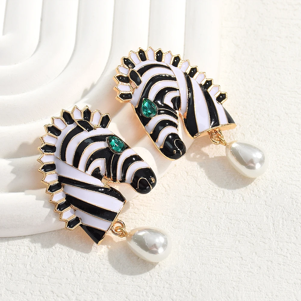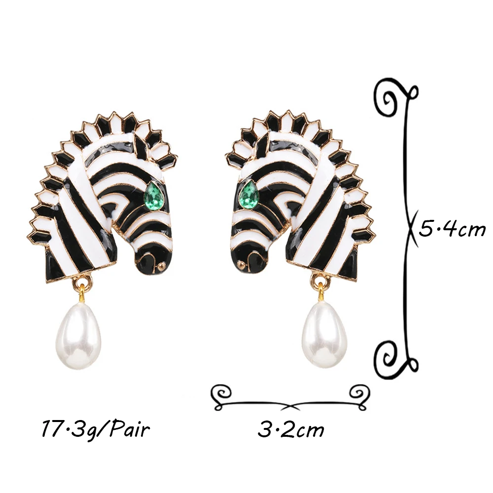 Statement Metal Zebra Head Shape Drop Earrings for Women Girls Fashion Animal Simulated Pearl Pendant Earrings Party Jewelry