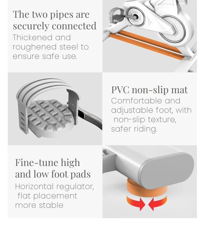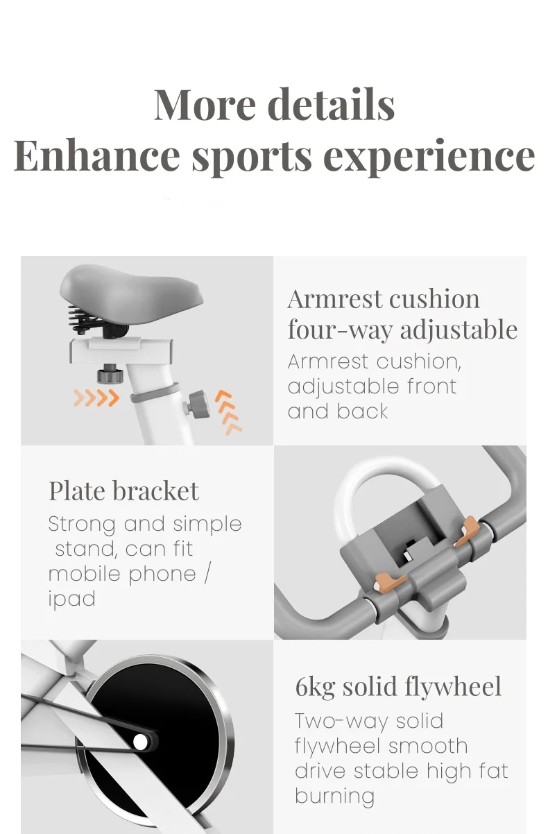 * Smooth Stationery Bike: 30 lbs flywheel and heavy-duty steel frame of the exercise bike guarantee stability while cycling. The belt-driven system provides a smoother and quieter ride than chain transport. It won’t disturb your sleeping kids or neighbors.