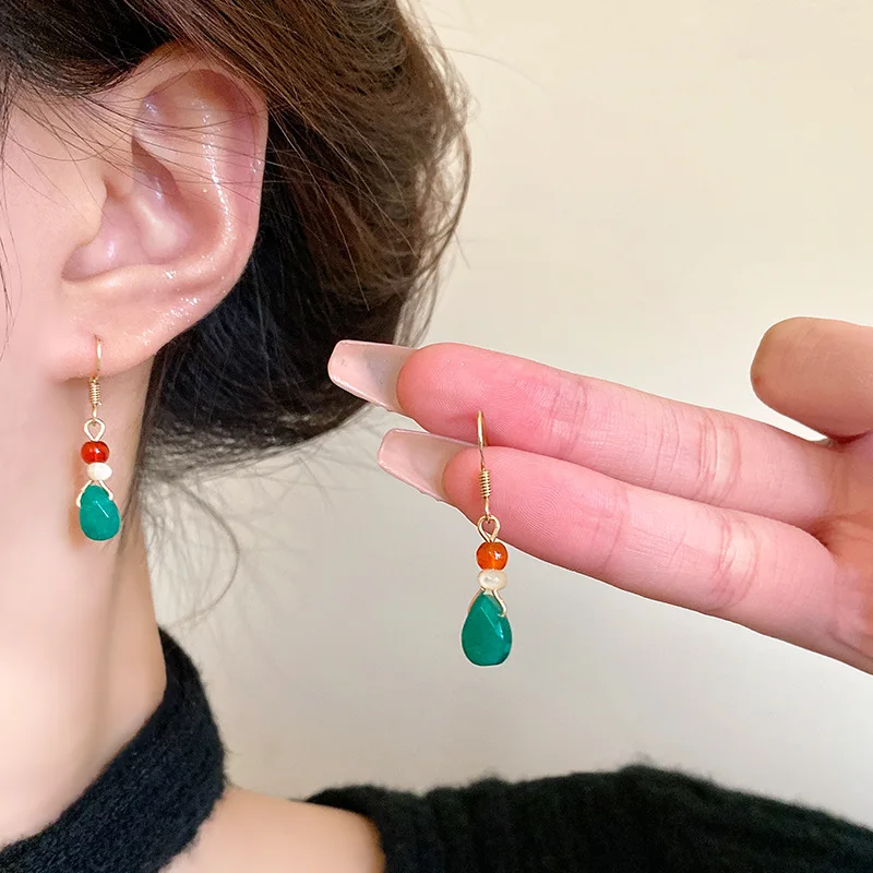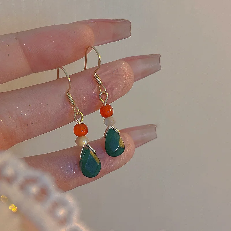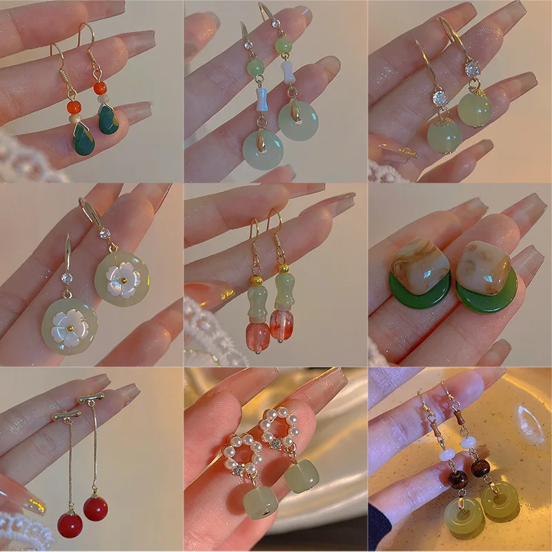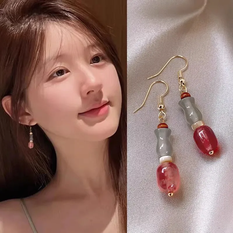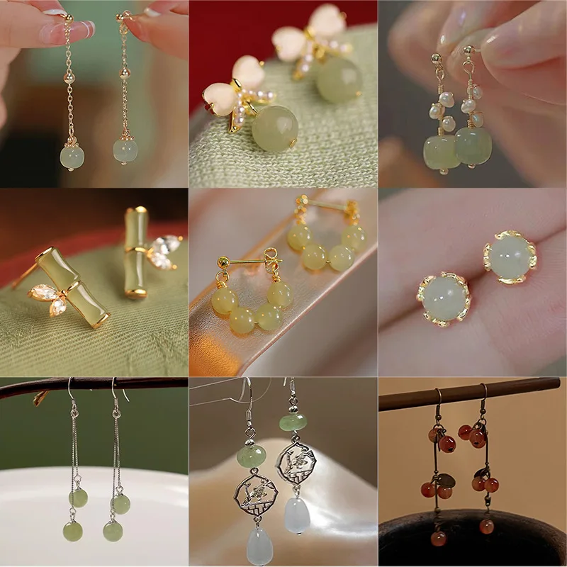 Steel Fun Jewelry Chinese Style Moon Beaded Earrings for Women Ancient Style Long Delicate Tassel Water Drop Pendant Ear Hook