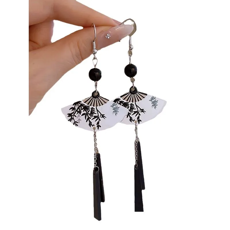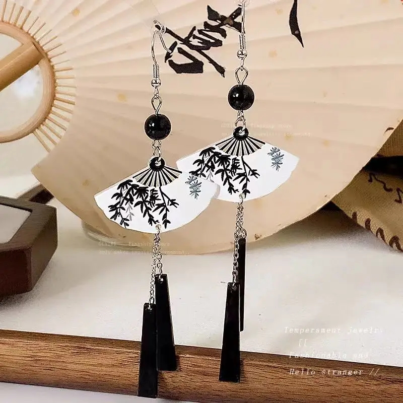 Steel Fun Jewelry New Ethnic Style Fan Shell Pendent Long Tassel Dangle National Style Earrings for Women Jewelry Gift 2024