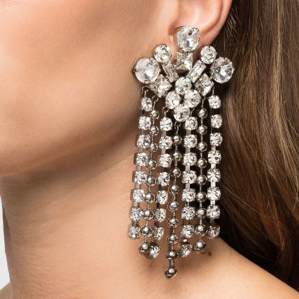 Brand name:Elegant crystal tassel clip earrings no piercing