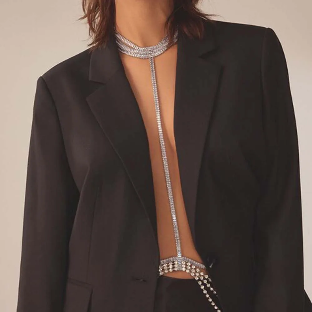 Stonefans Sexy Zircon Waist Chain Festival Rave Neck Lingerie Necklace Outfits Cz Fashion Sexy Body Jewelry Women Chest Party
