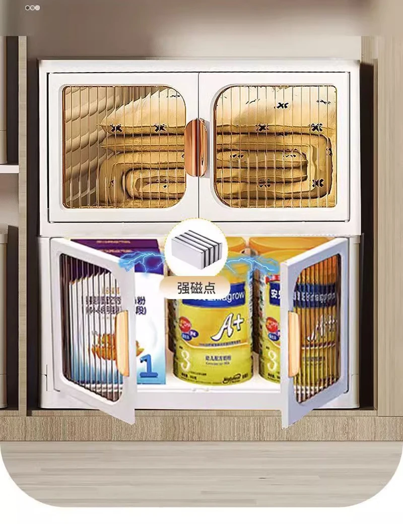 Storage Cabinet With Doors Large-Capacity Foldable Closet Support Rack For Home Use Clothing Organizer Wardrobe Bin Box Wheels