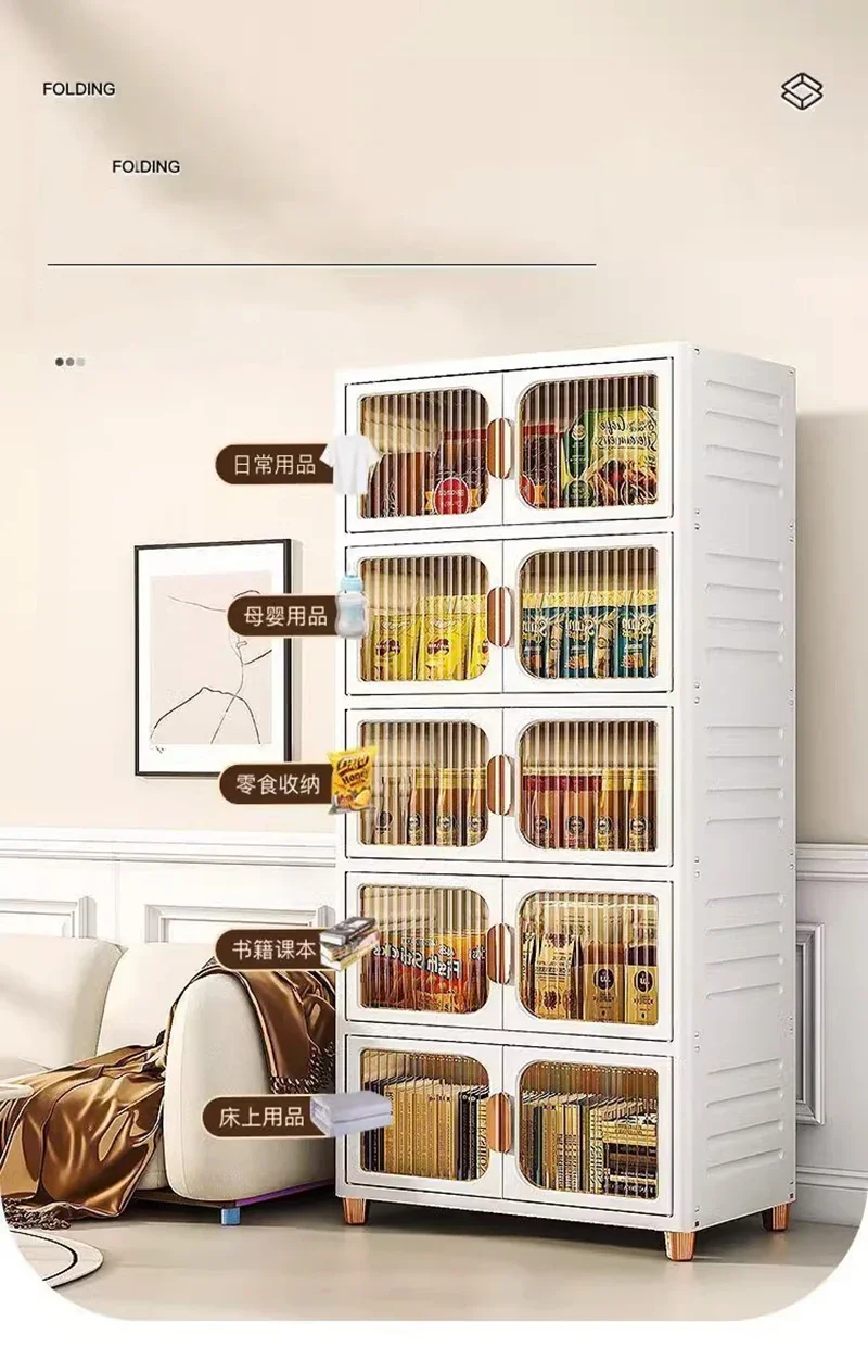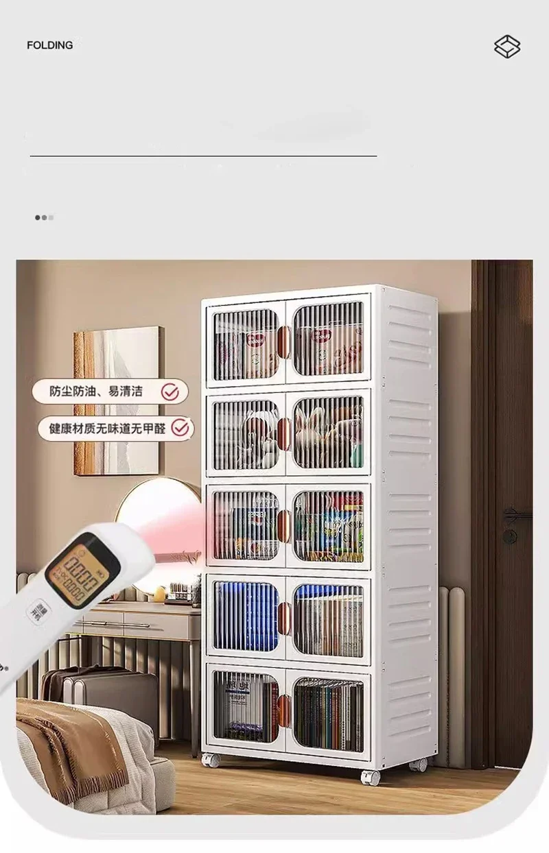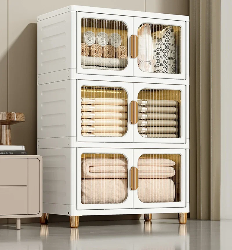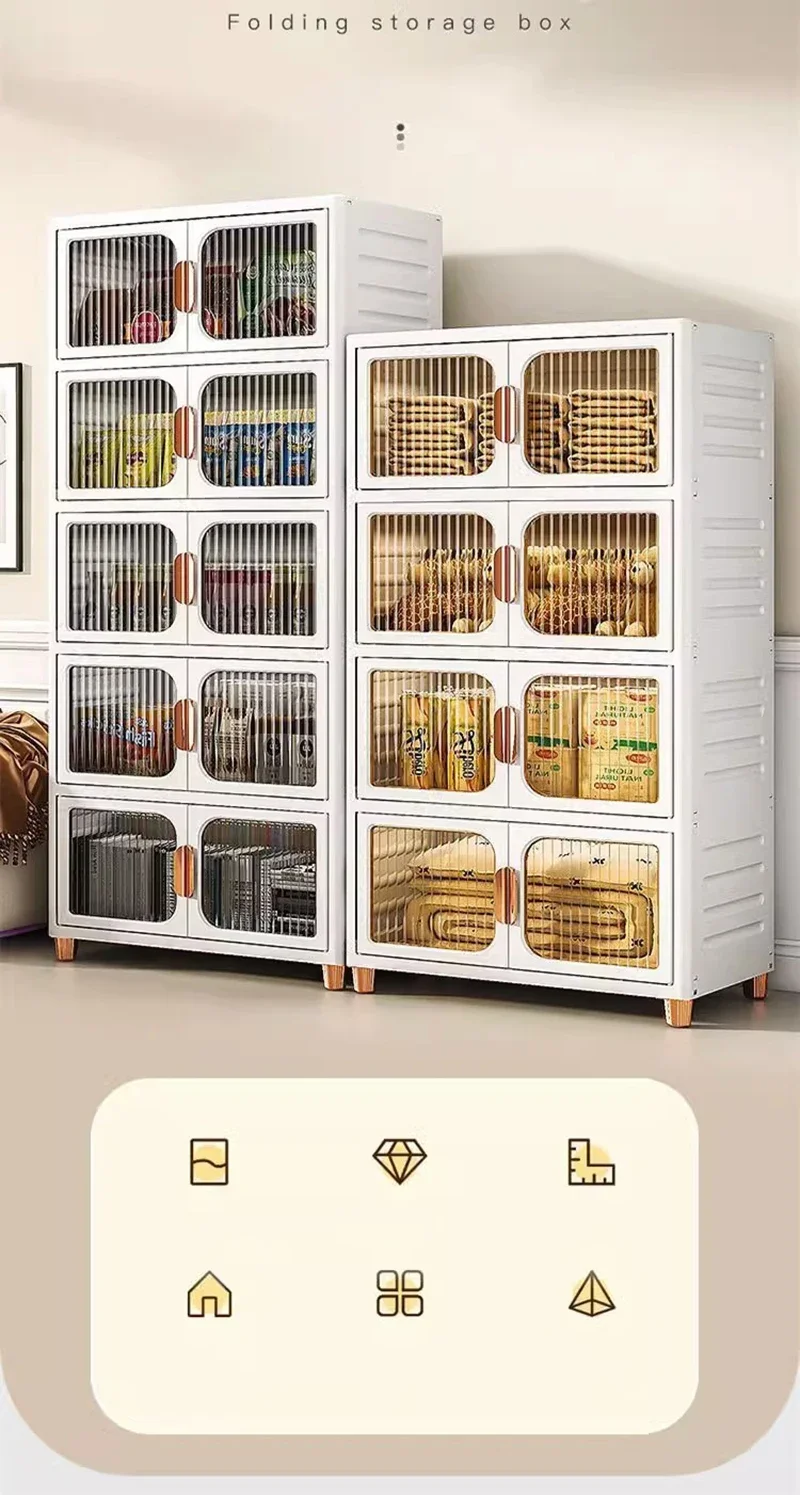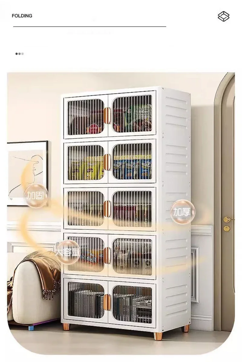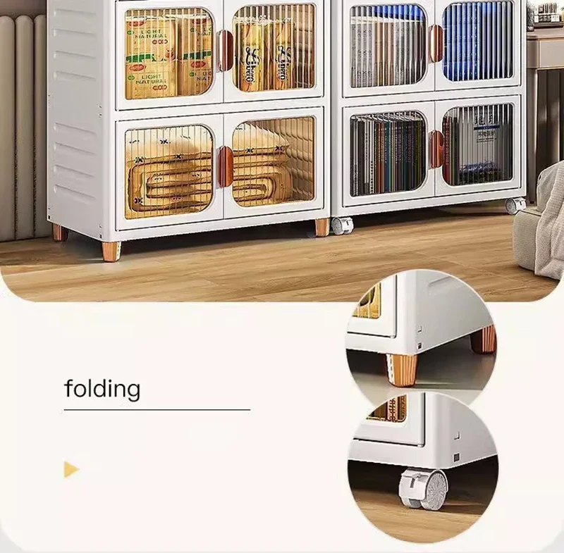 Storage Cabinet With Doors Large-Capacity Foldable Closet Support Rack For Home Use Clothing Organizer Wardrobe Bin Box Wheels