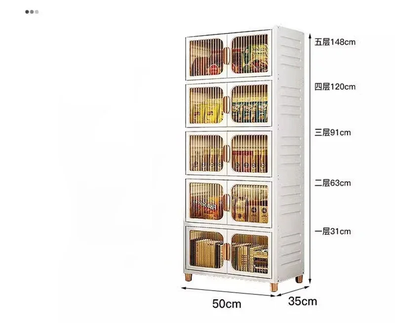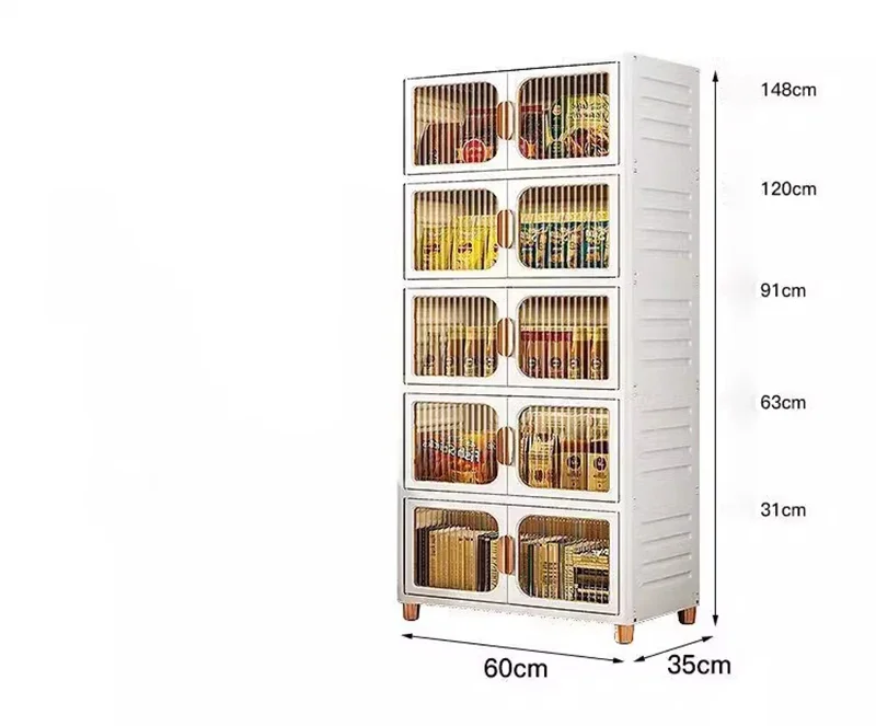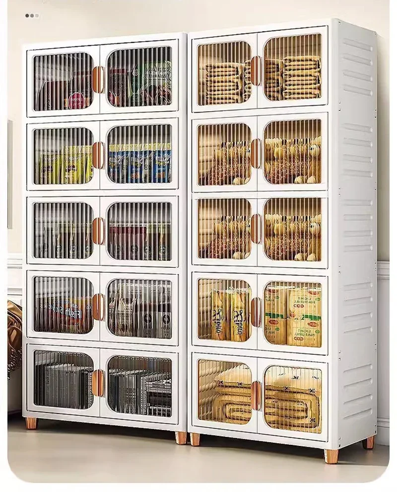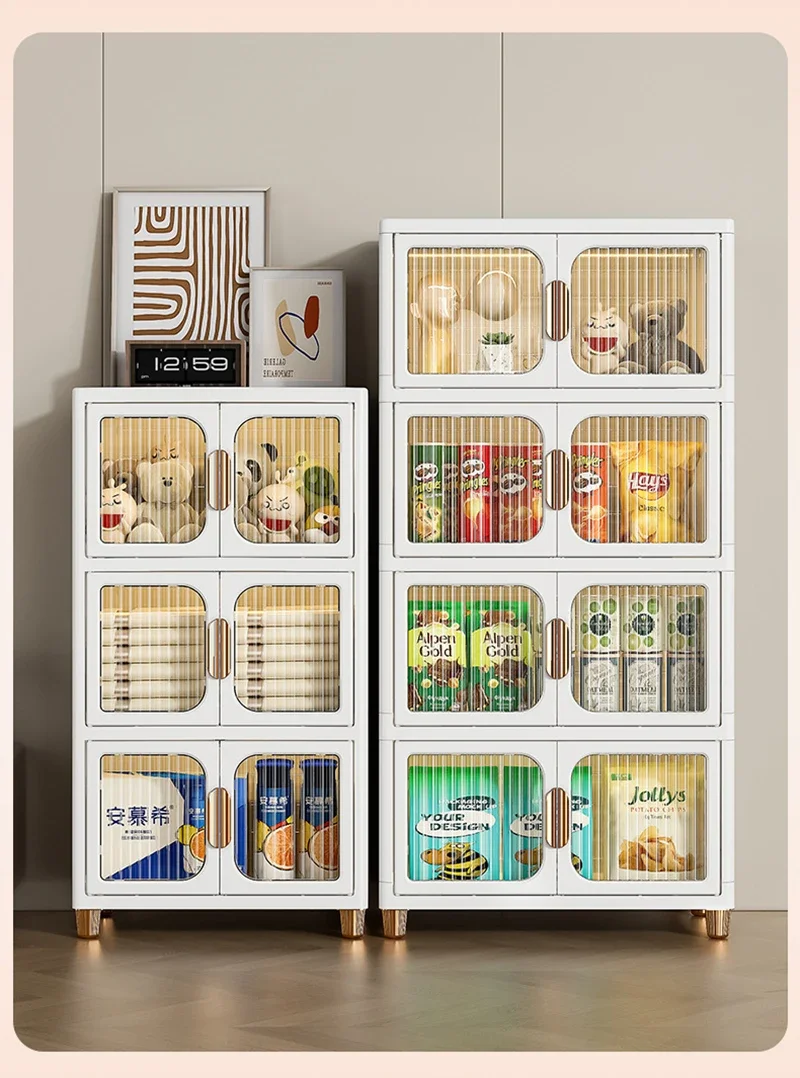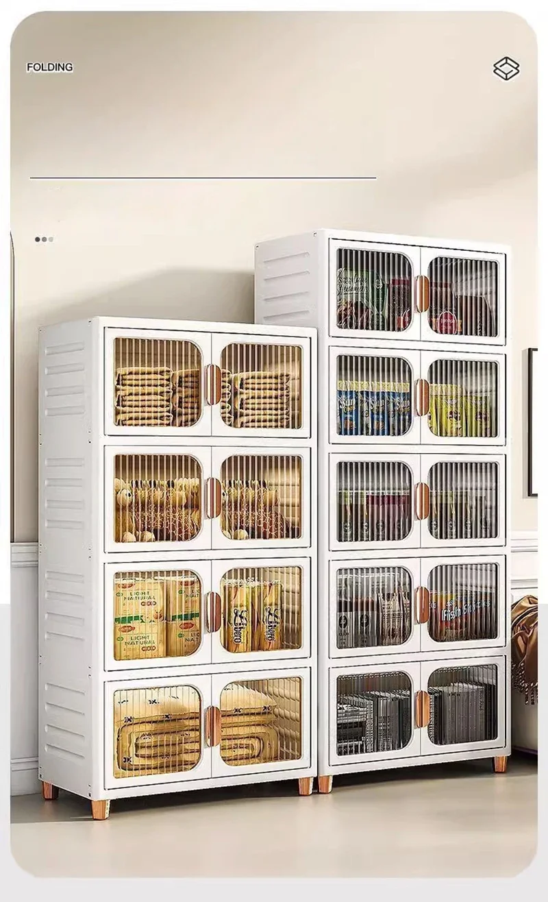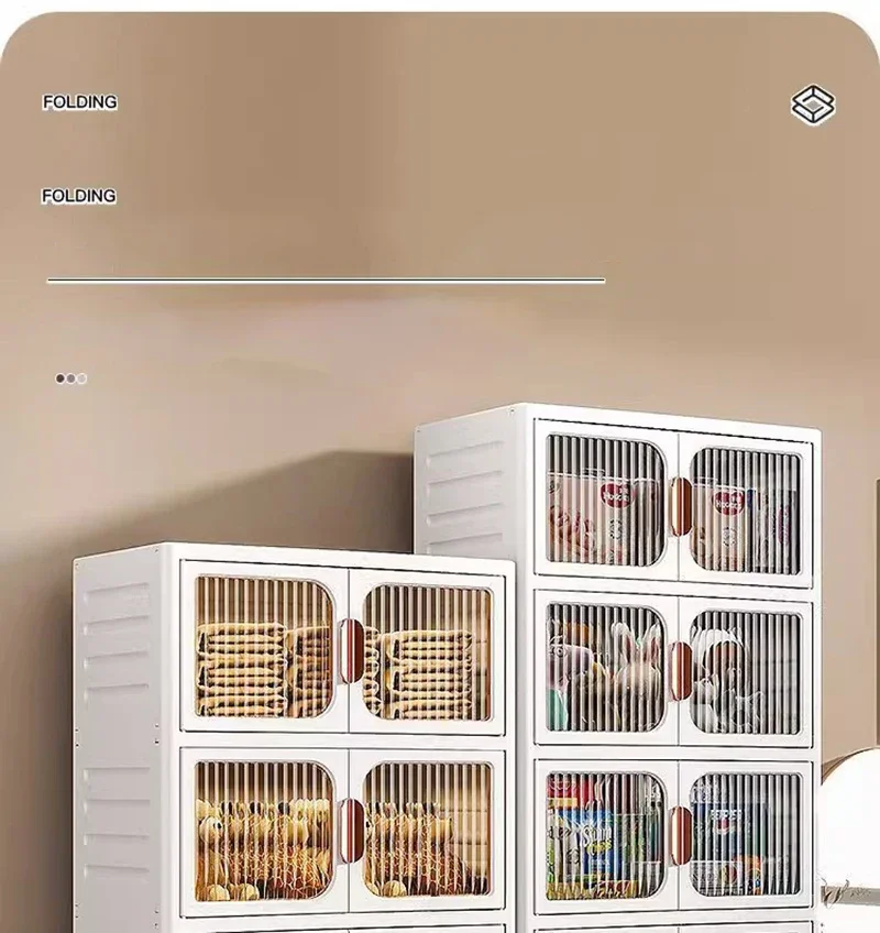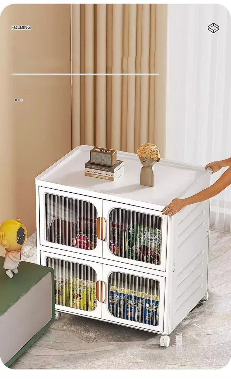 Storage Cabinet With Doors Large-Capacity Foldable Closet Support Rack For Home Use Clothing Organizer Wardrobe Bin Box Wheels