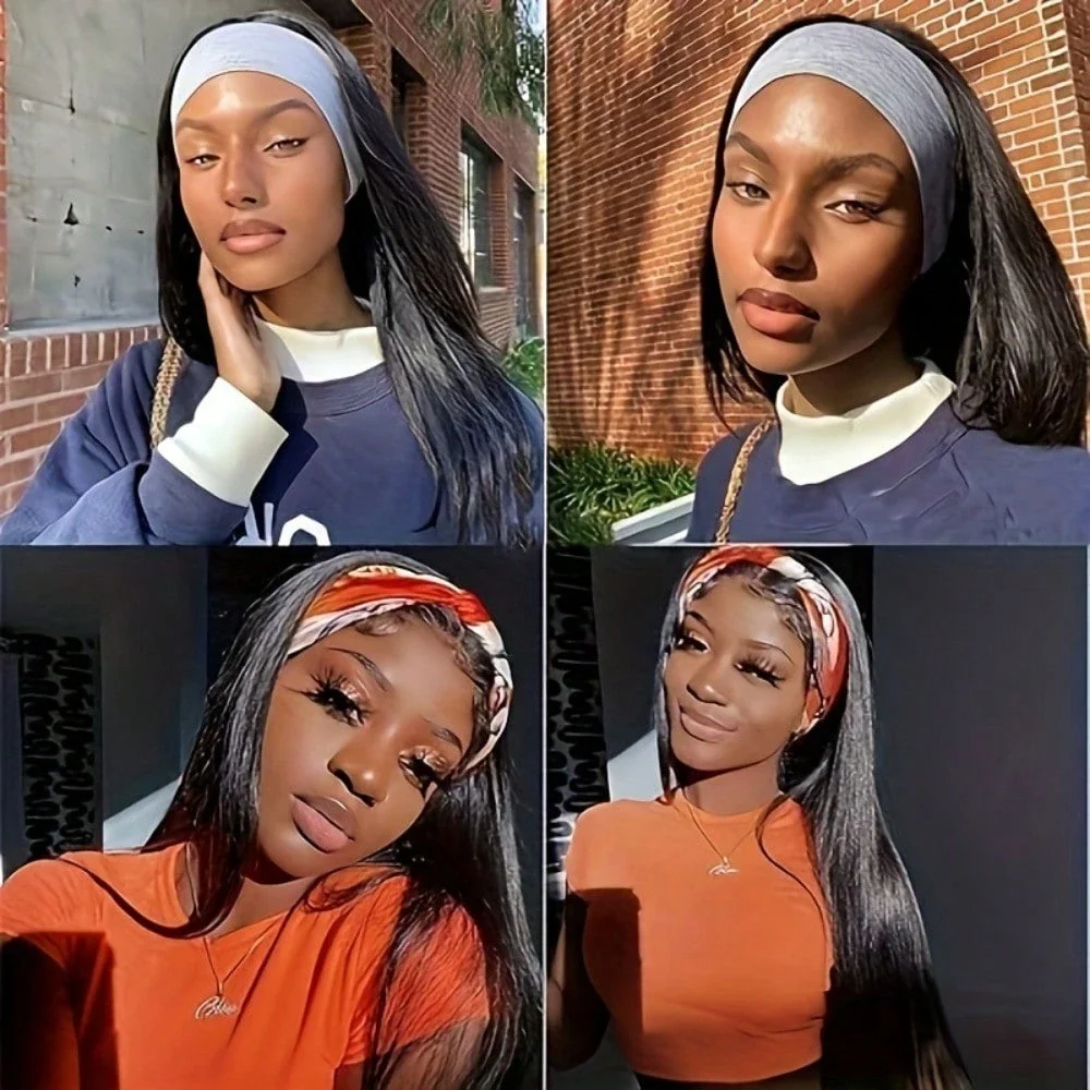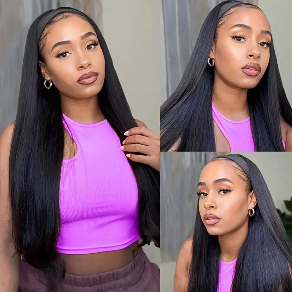 Straight Headband Wig Human Hair Headband Human Hair Wigs For Black Women None Lace Front Wigs Human Hair Wig Human Hair