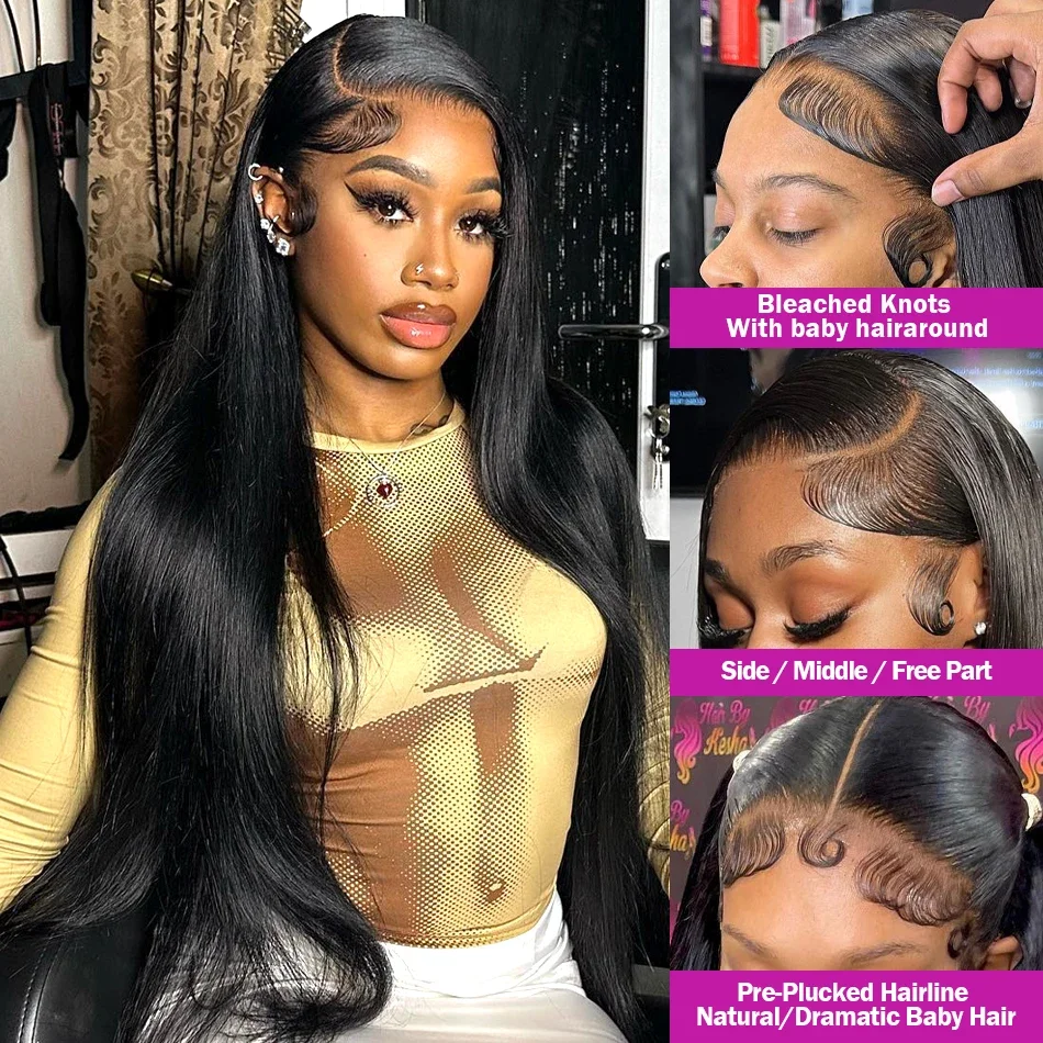 Straight Natural Color Wig 13×6 Transparent Front Human Hair 180 Density Lace Closure Wig Brazilian Hair For Black Women