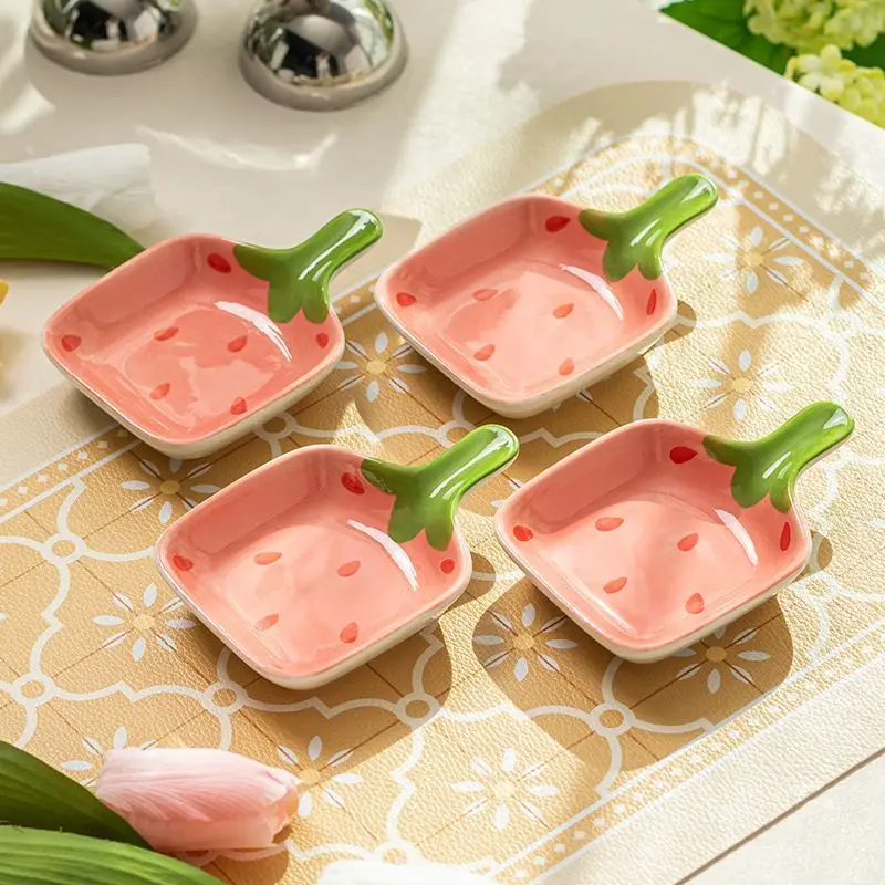 Strawberry Ceramic Seasoning Plate Lovely Dipping Plate Household Soy Sauce Dish Taste Snack Plates Special for Microwave Oven