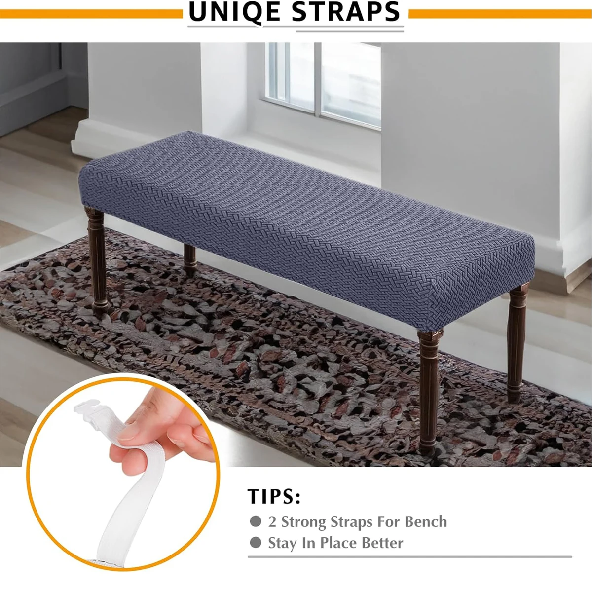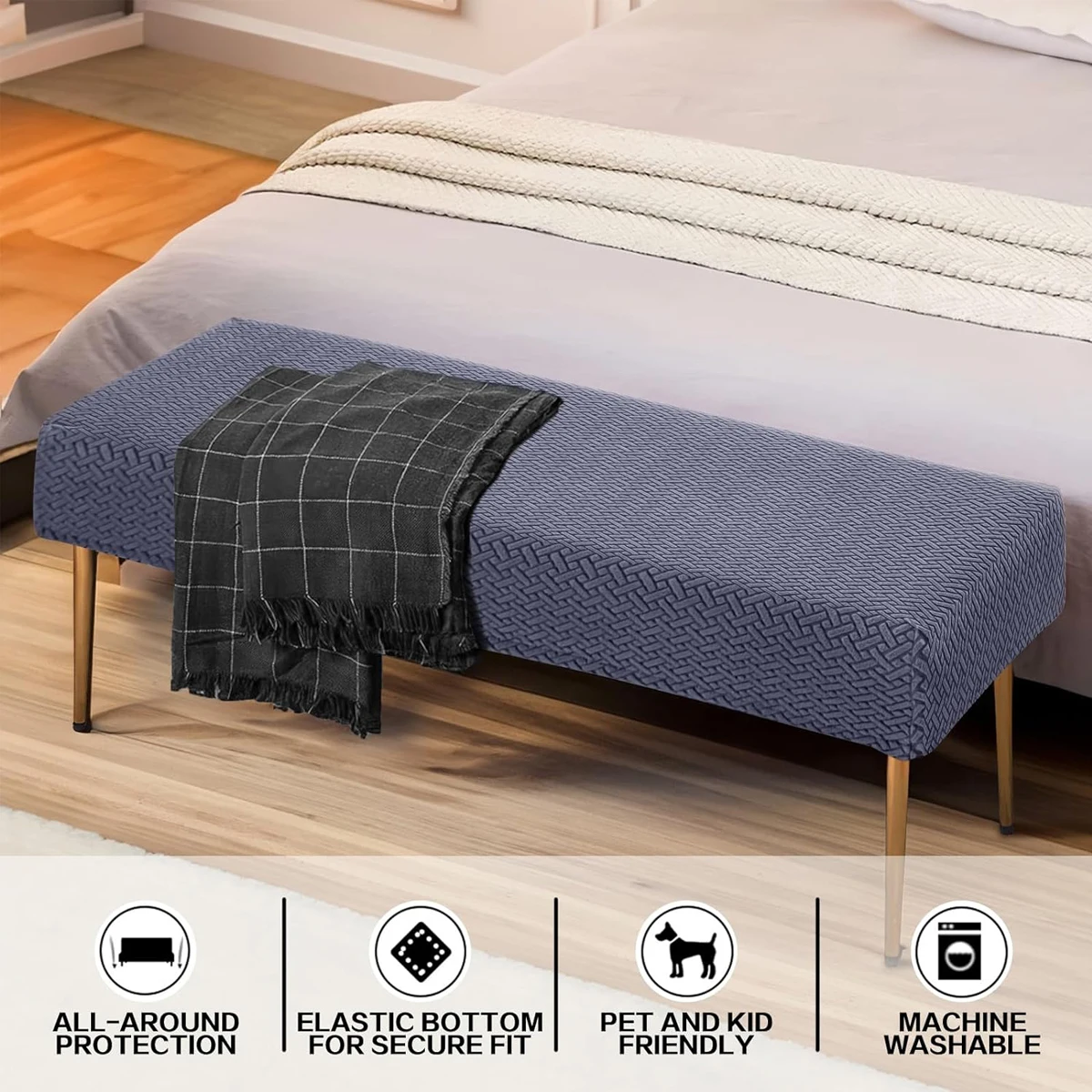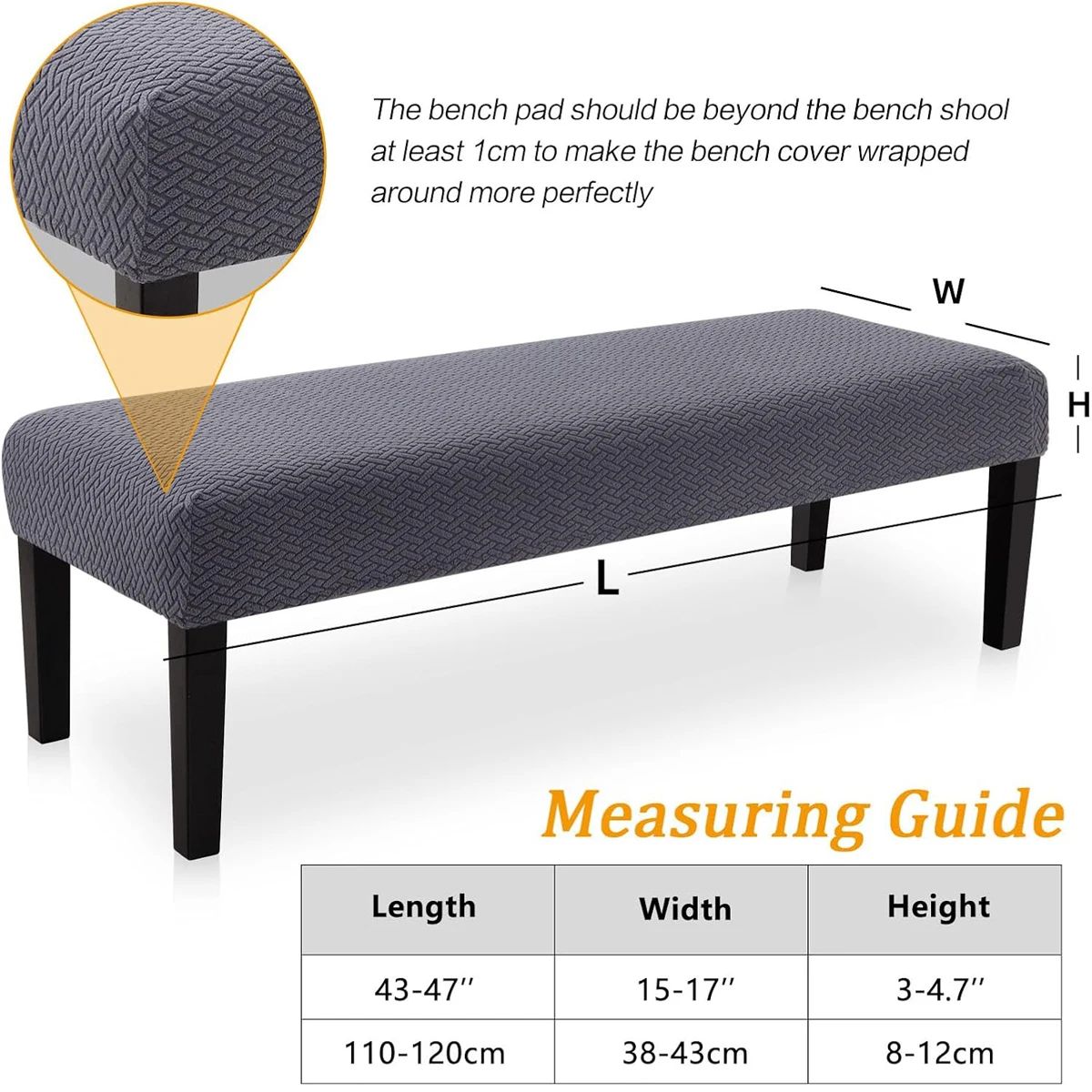 Stretch Jacquard Dining Bench Cover Living Room Anti-Dust Removable Bench Slipcover Washable Bench Seat Protector