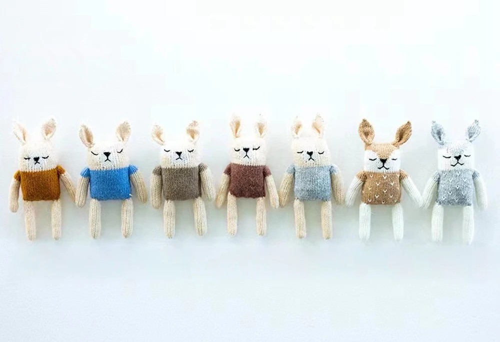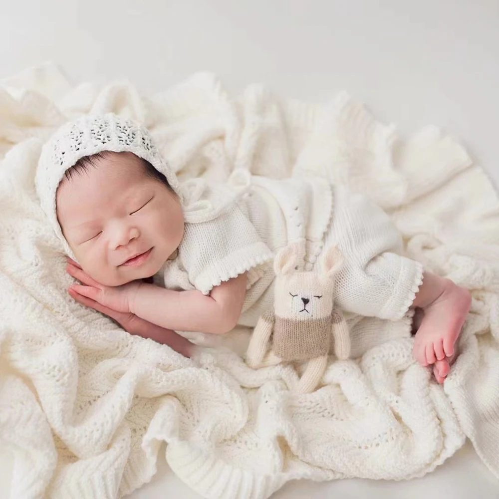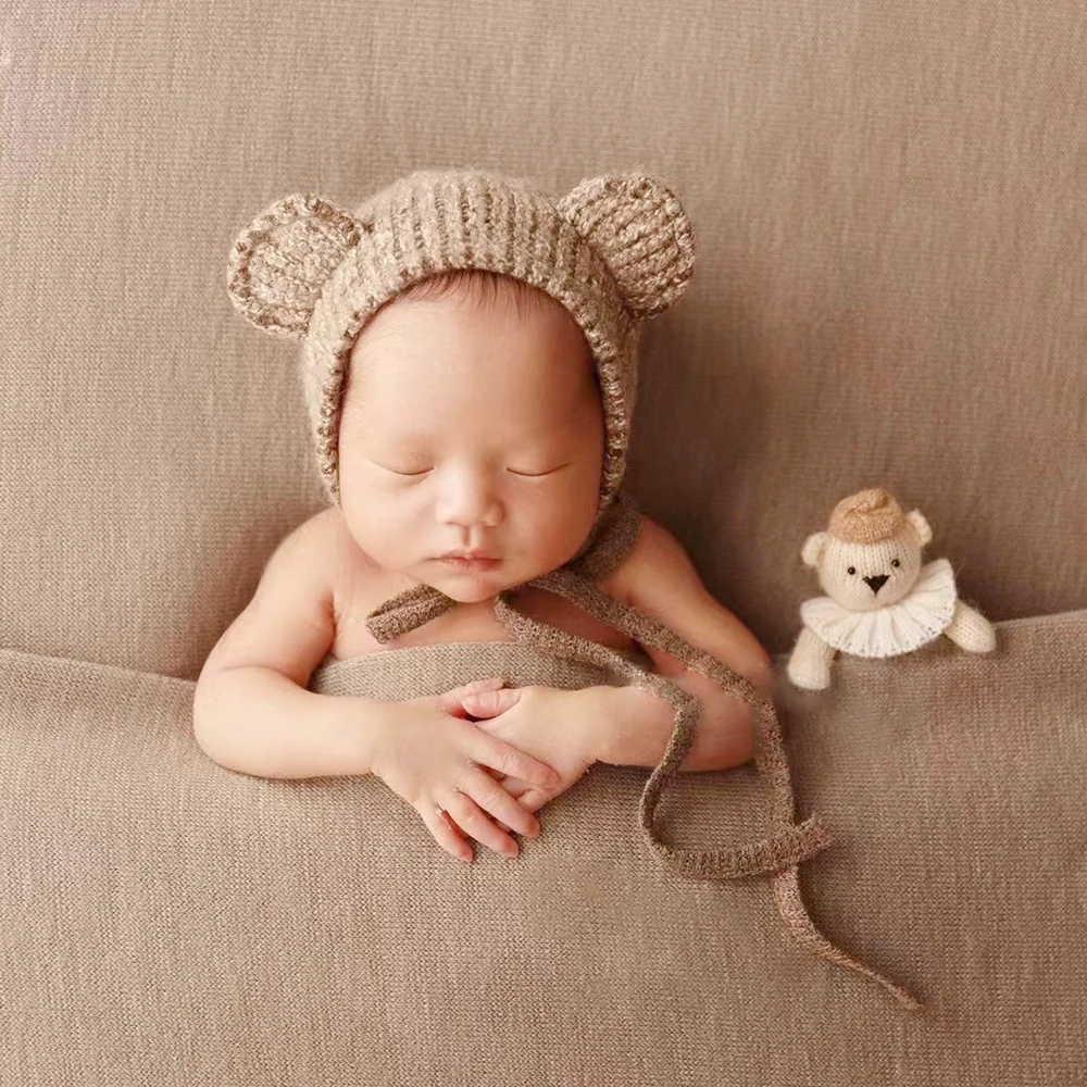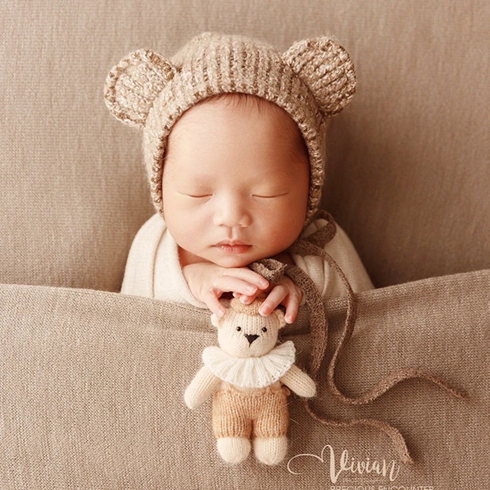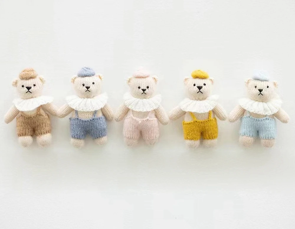 Stuffed Mini Bear Newborn Photography Props Knitted Fox Handmade Animal Newborn Props Baby Photo Shoot Accessories