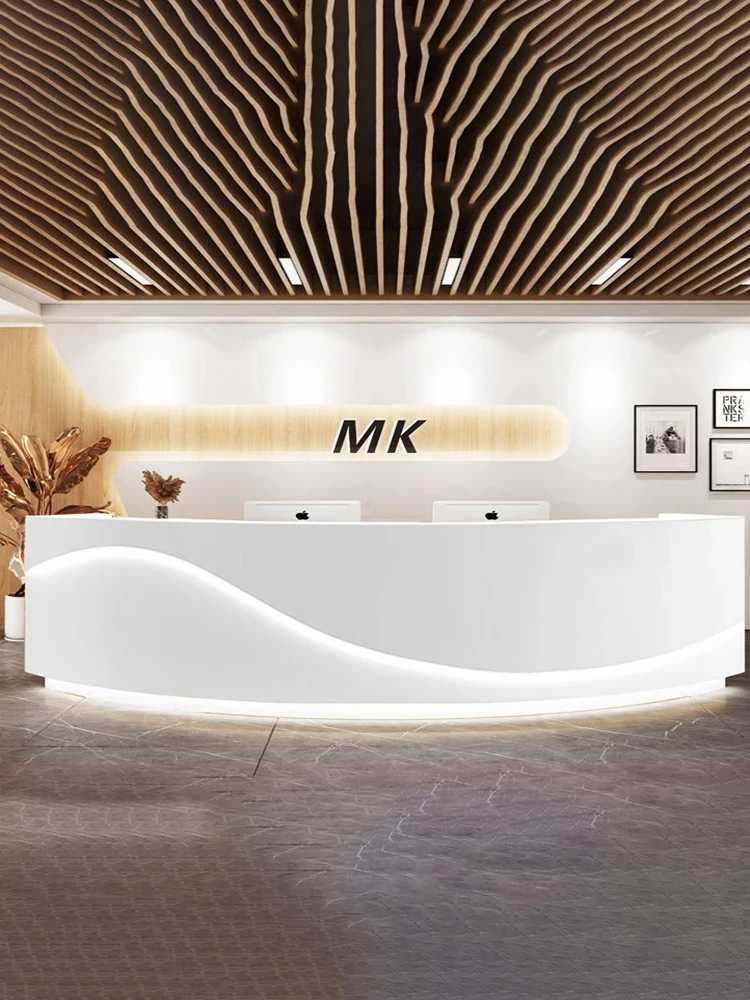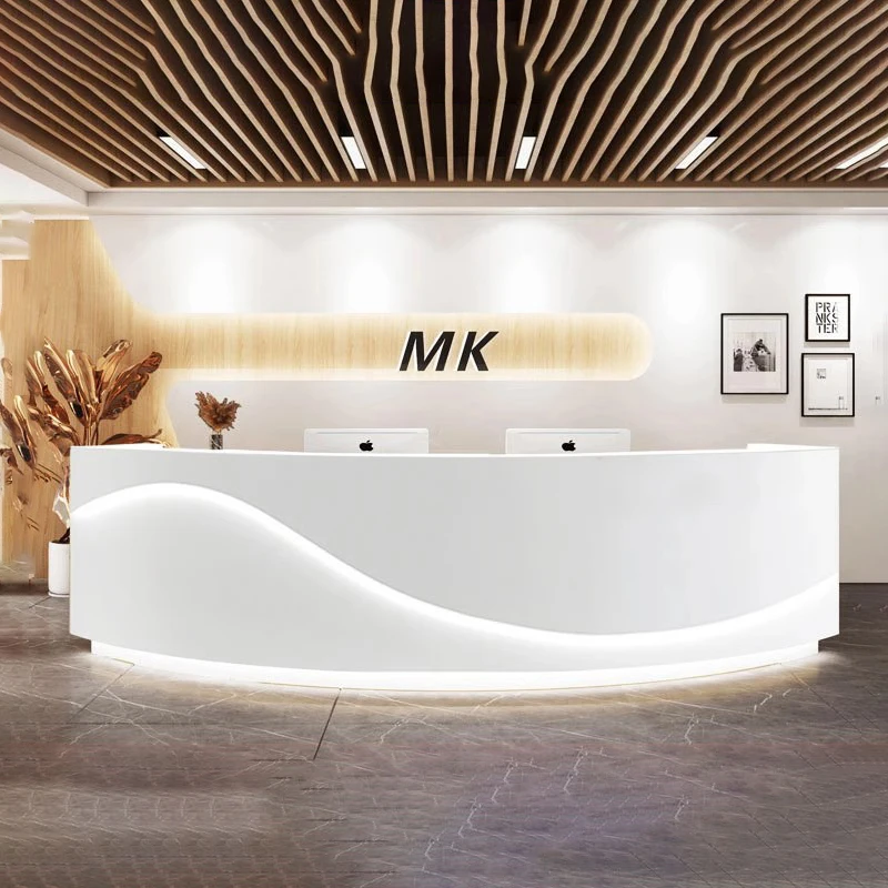 Stylish White Reception Desks Illuminated Design Beauty Salon Reception Desks Corner Mostrador Negocio Commercial Furniture
