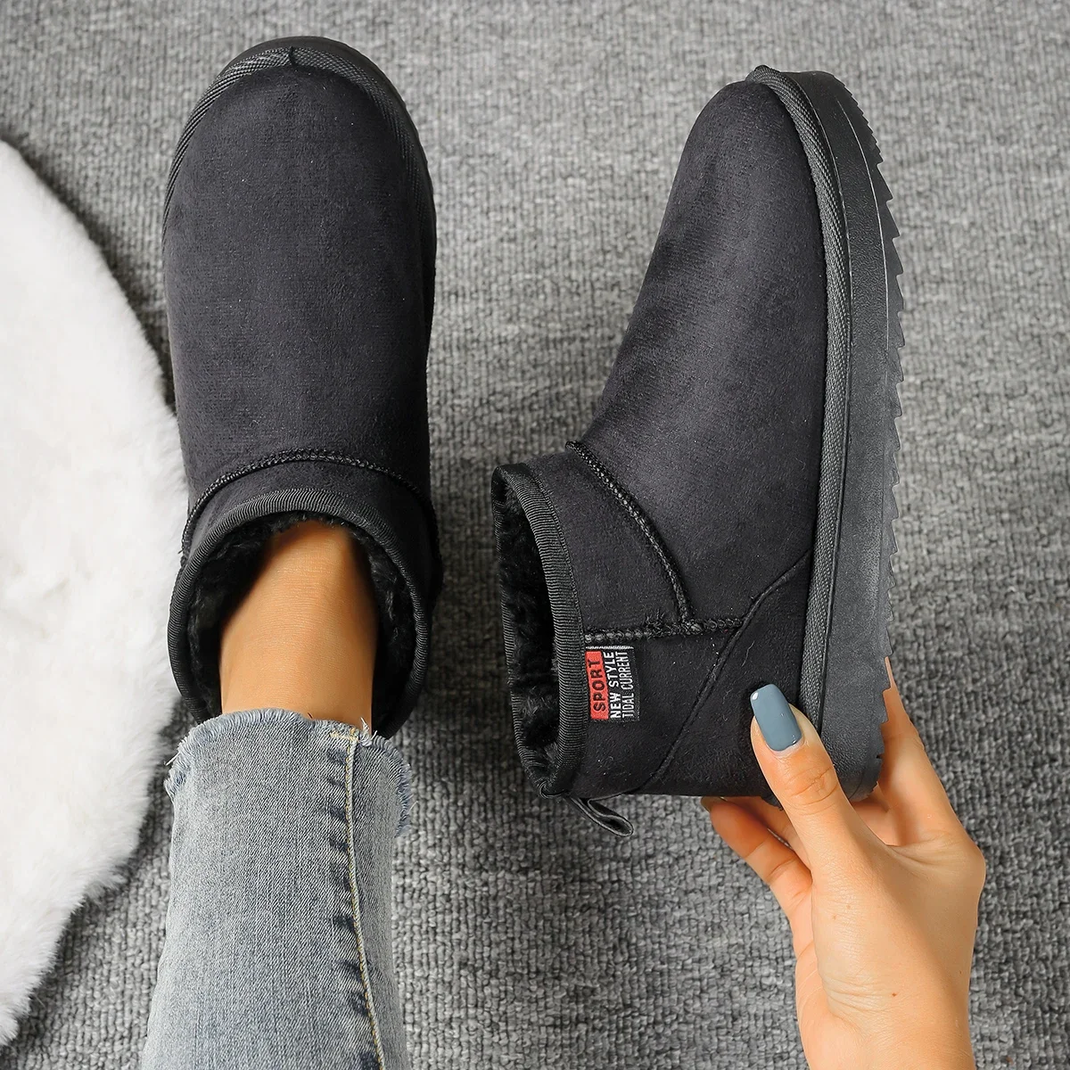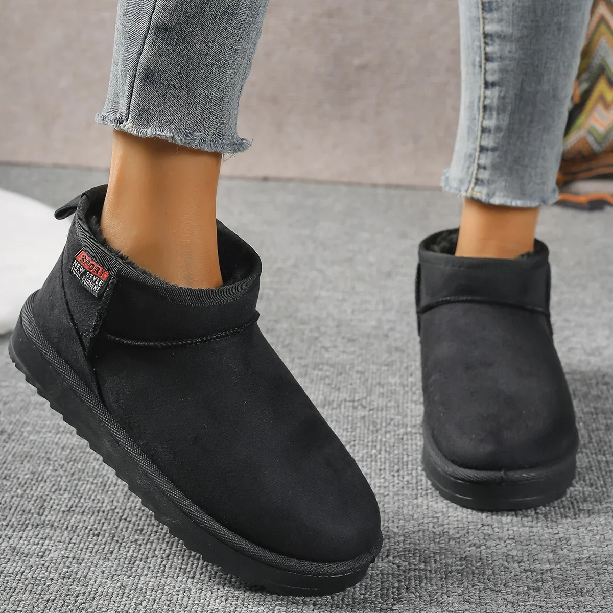 Suede Flats Ankle Women Snow Boots Warm Comfort 2024 Winter Casual Shoes New Trend Hot Sale Walking Non-slip Chaussures Femme