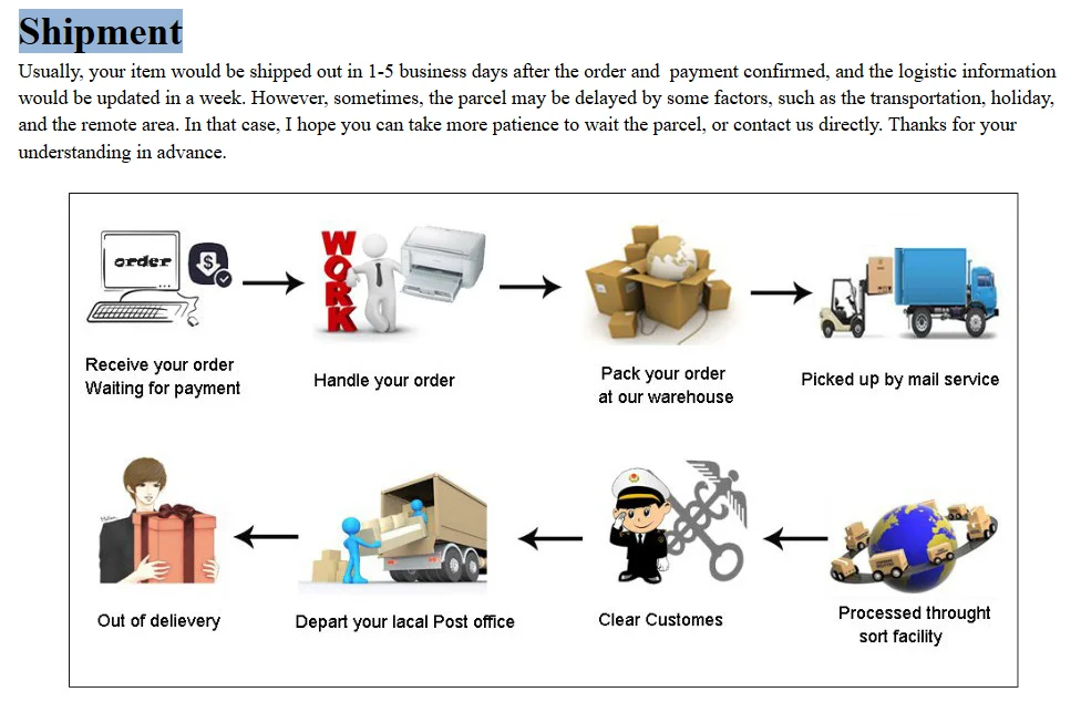6.NOTE:We will not produce the custom item until the payment have been finished.