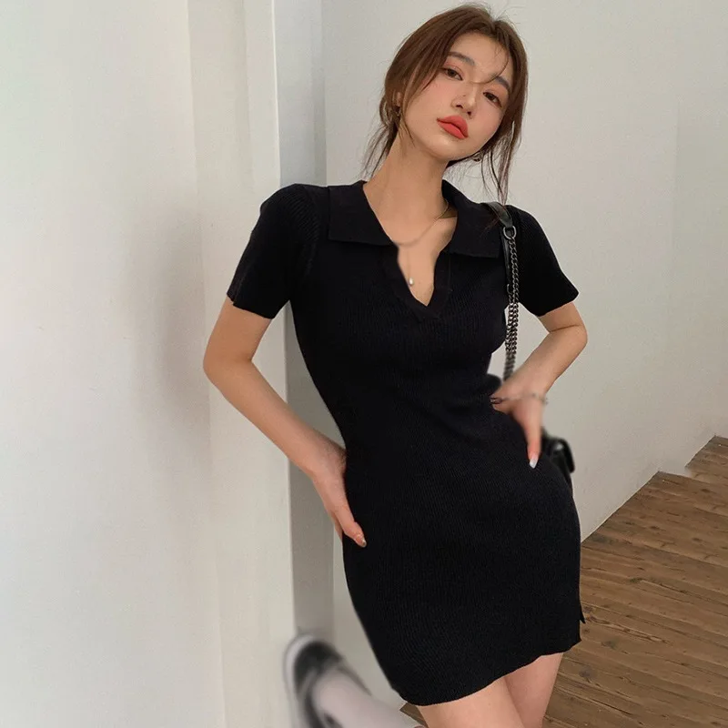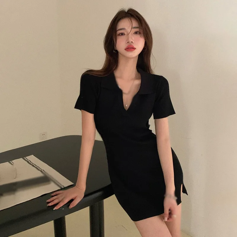 Summer French V-Neck Hip Hugging Short Women’s Dresses With Feminine Temperament Solid Color Slim Fit Sexy Skirts