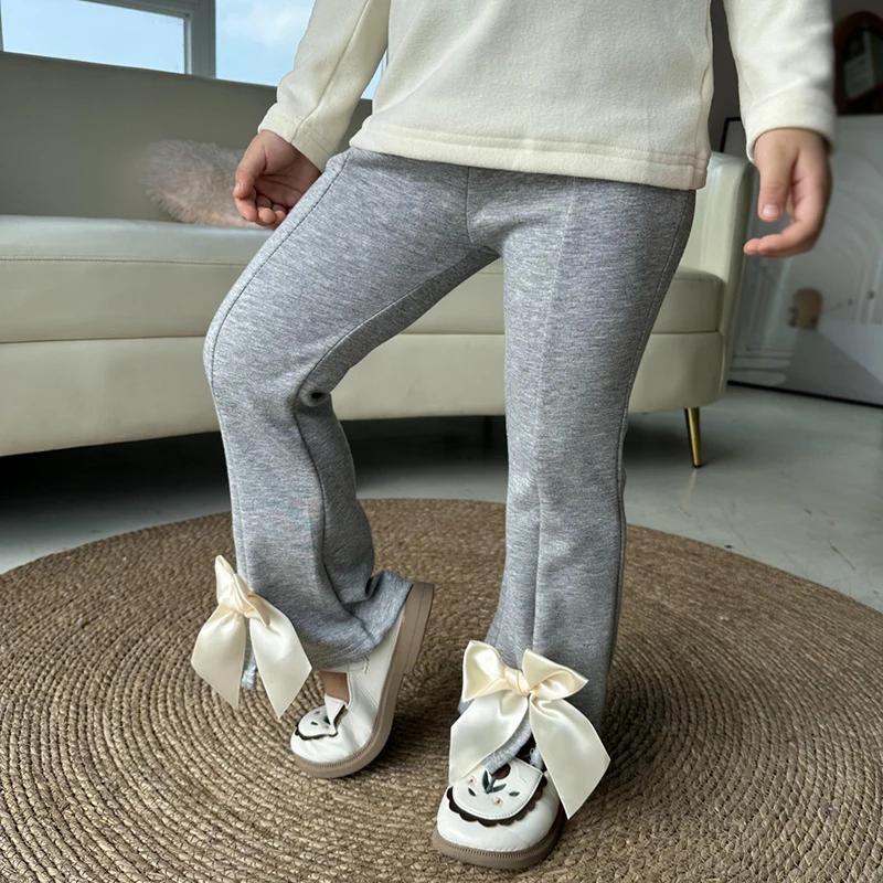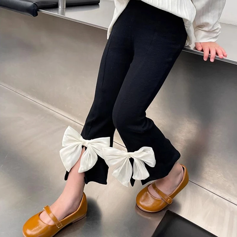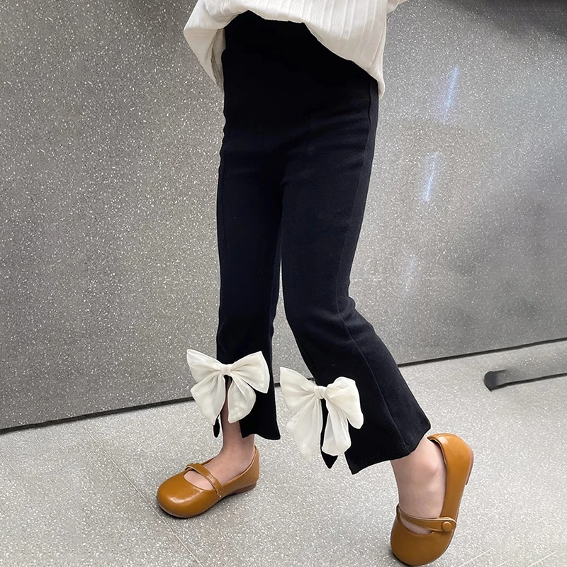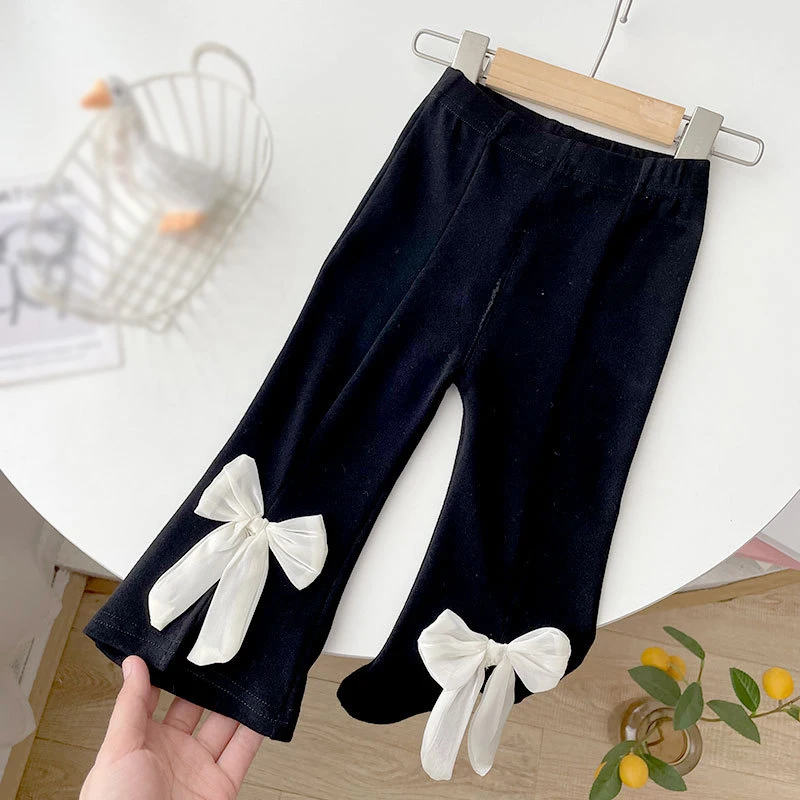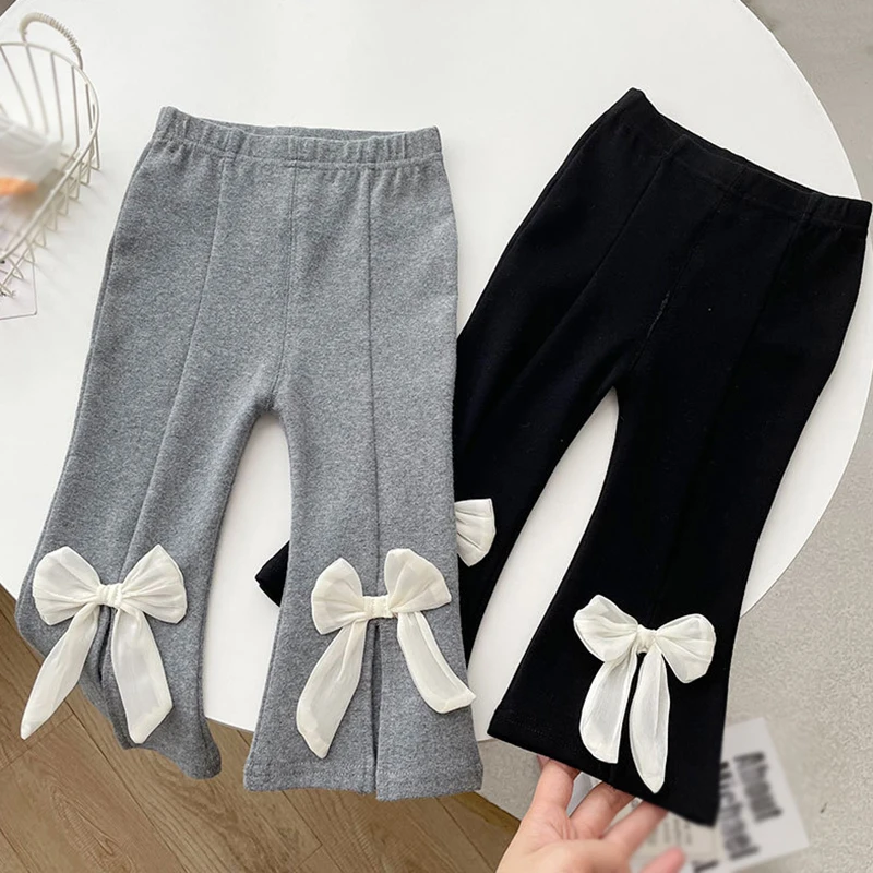 Summer Kids Pants Clothes with Bow Solid Baby Solid Trousers Flare Pants Cotton Spring Loose Children Pants for Girls 1-9years