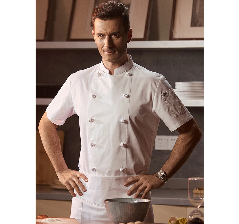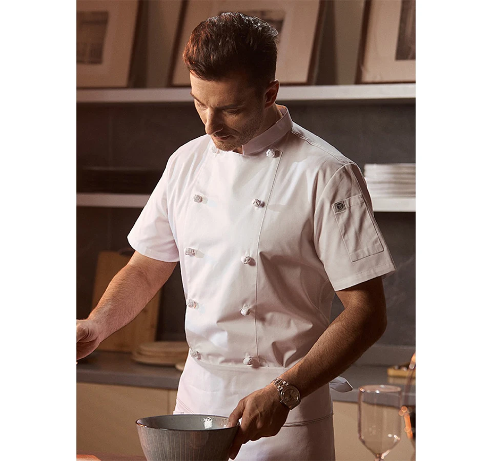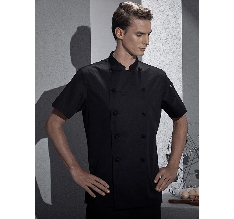 Summer Kitchen Clothes Hotel Men’s Chef Jacket Breathable Restaurant Chef’s Uniform Bakery Bake Cafe Waiter Work Shirt