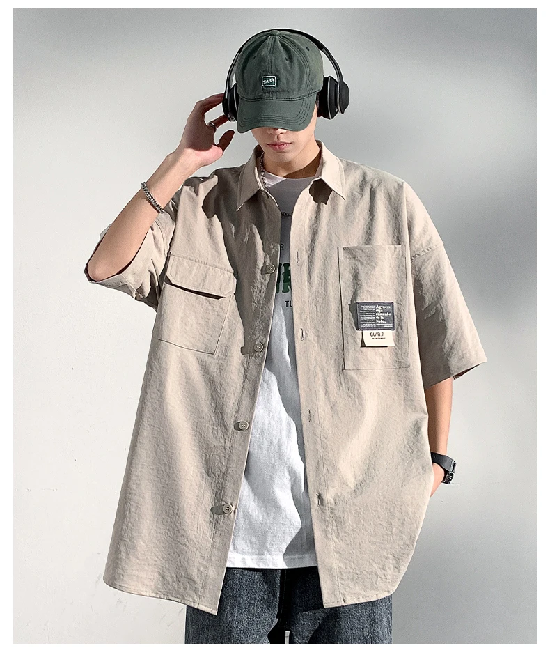 Cargo Shirts Men Baggy Summer Techwear Vintage Unisex Clothes Harajuku Japanese Fashion Camisas Minimalist Hip Hop Streetwear