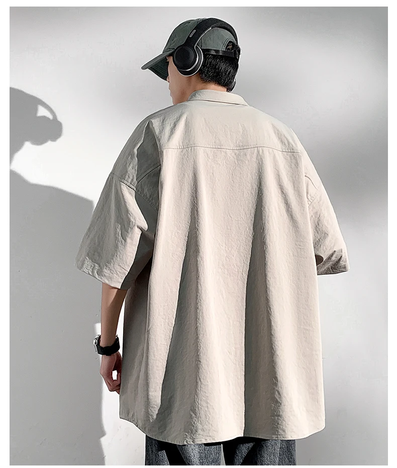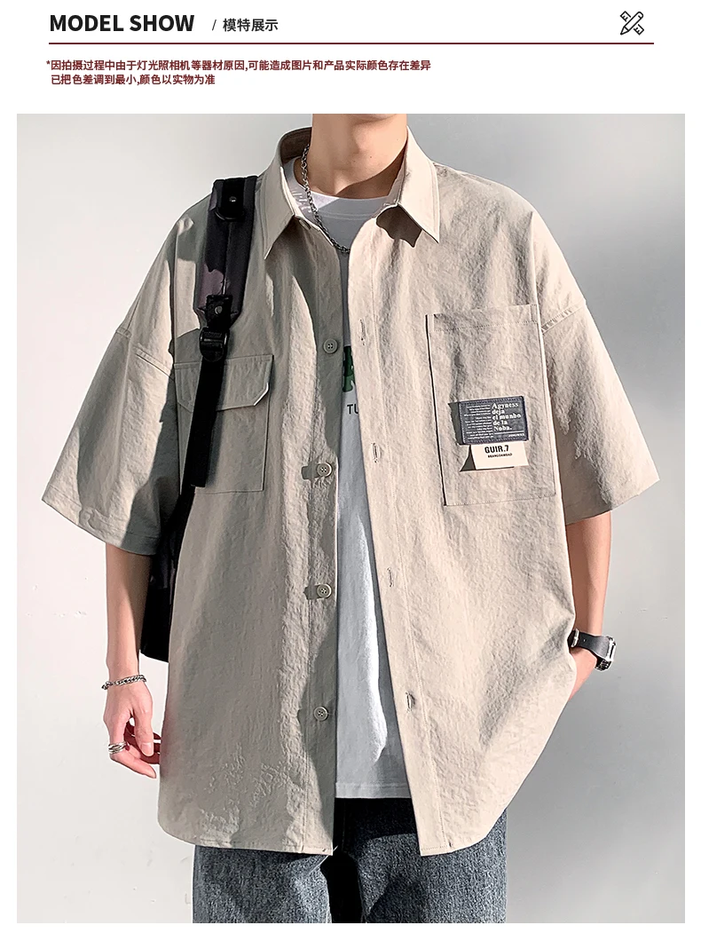 Summer Men’s 5XL Oversized Short Sleeve Shirts Japanese Casual Lapel Blouses Tops High Street Multi-pocket Shirt Men Camisas