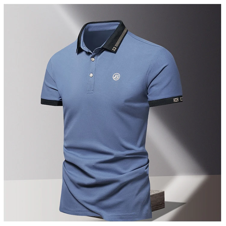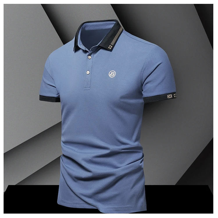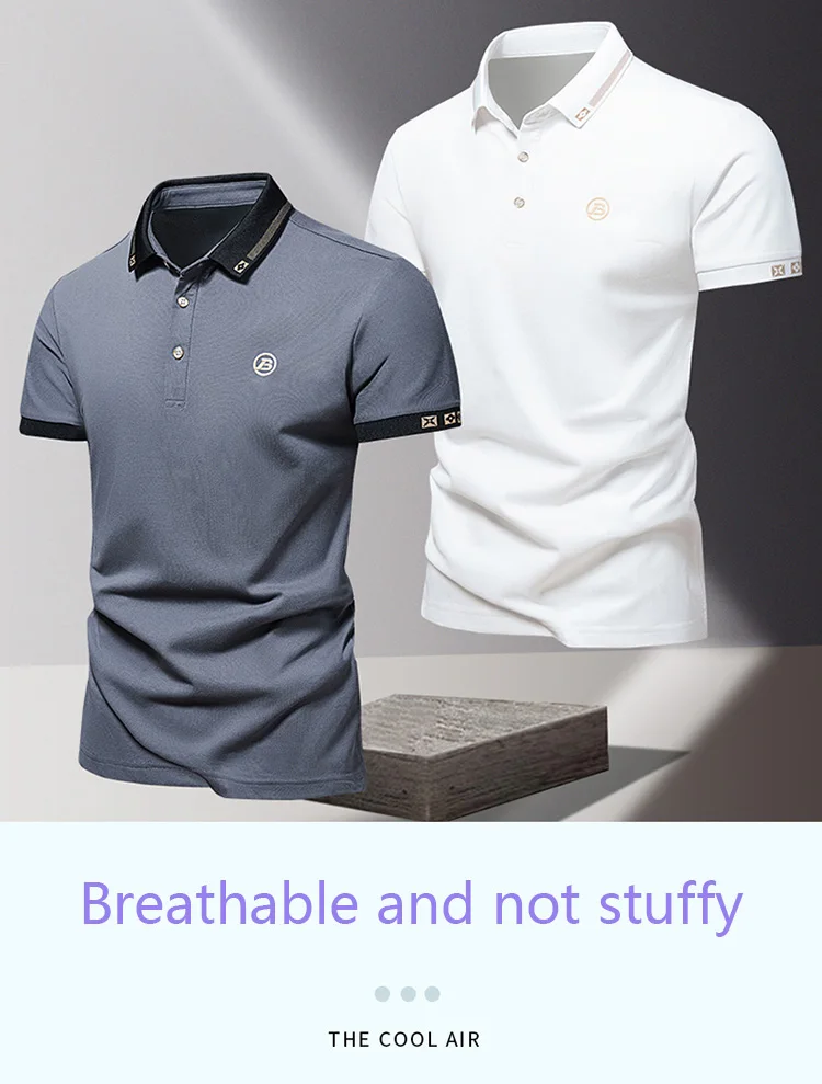 Summer men’s POLO shirt fashionable ice silk quick drying short sleeved embroidered T-shirt lapel solid color business top