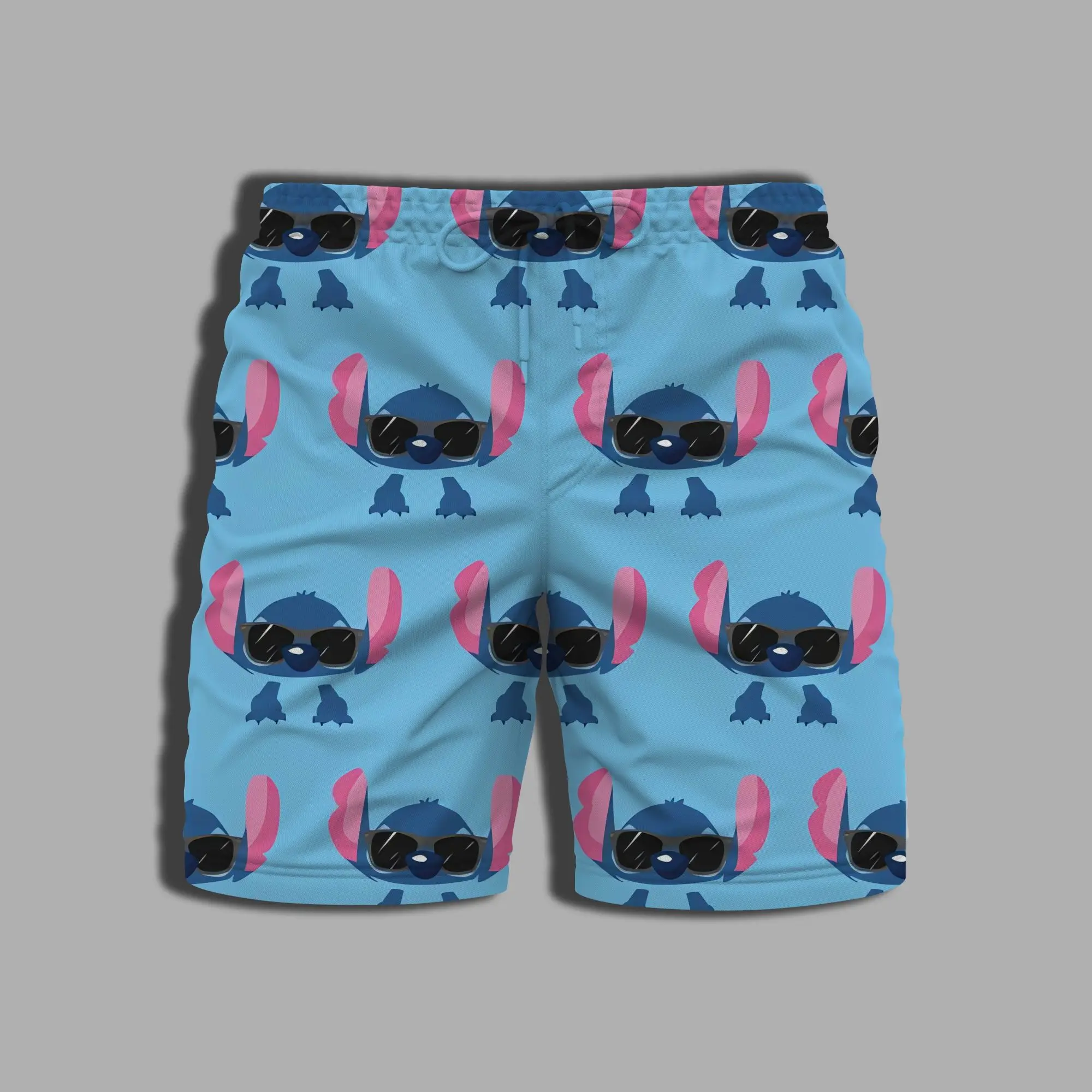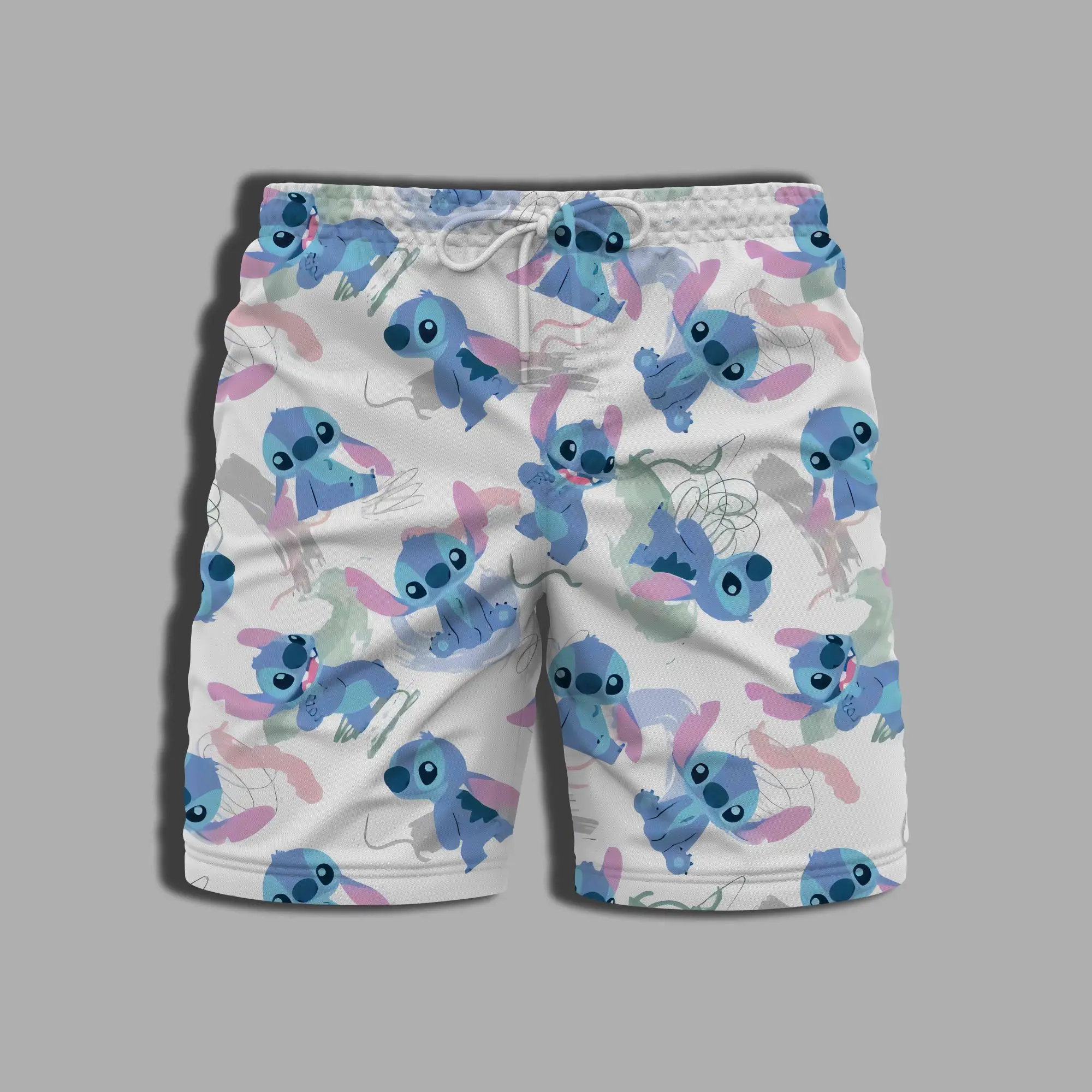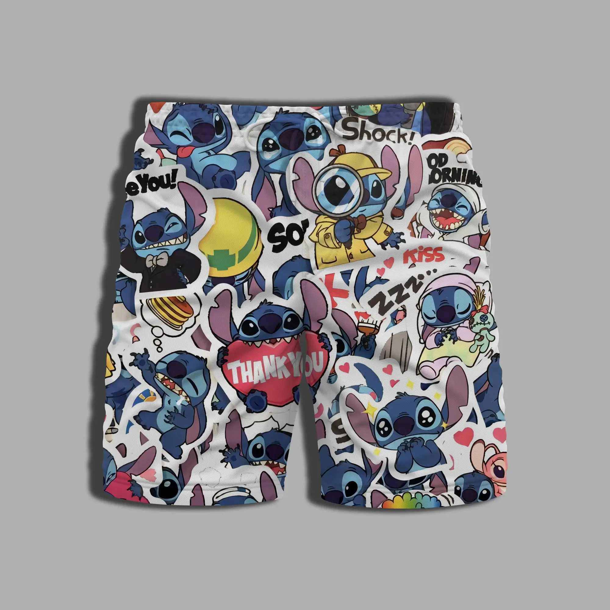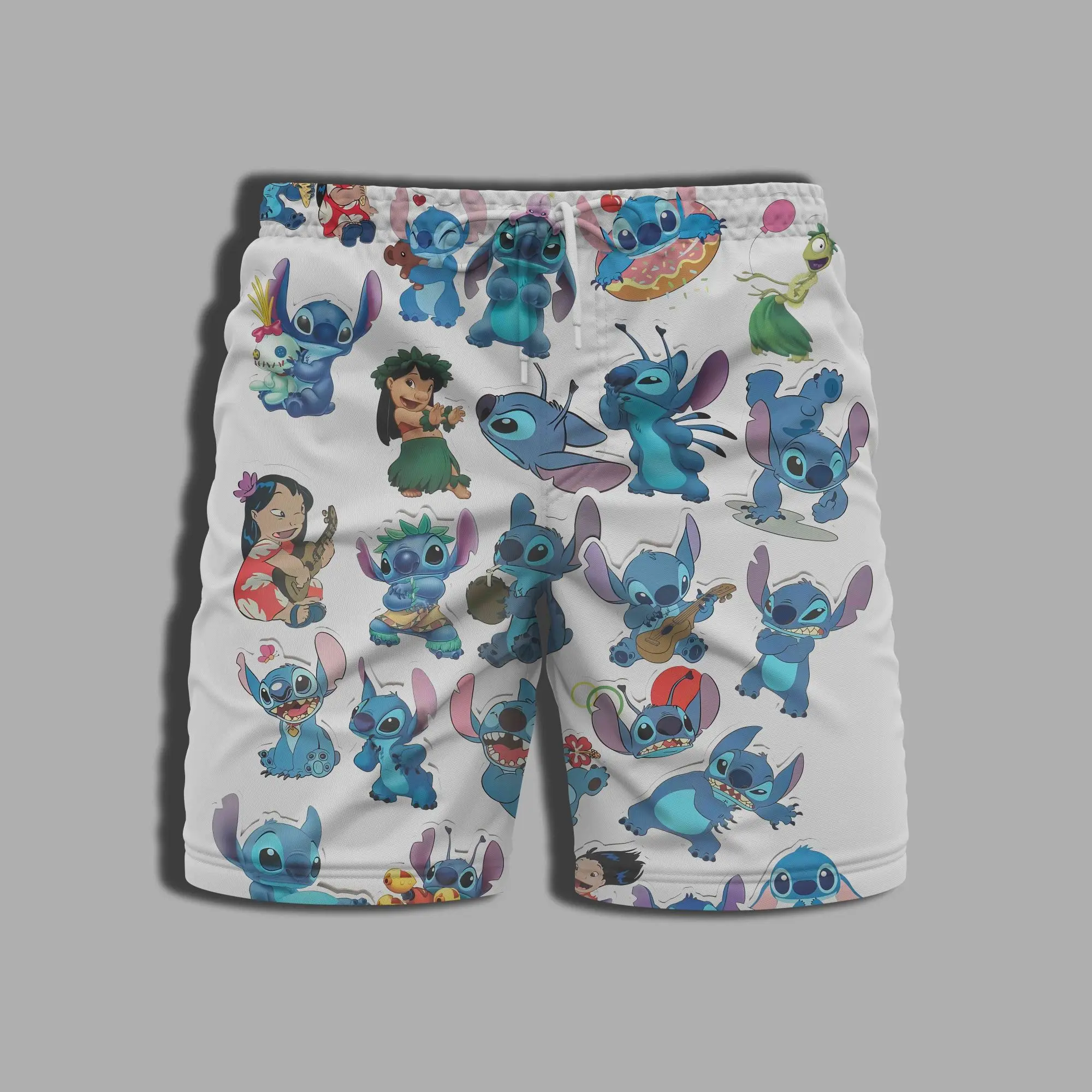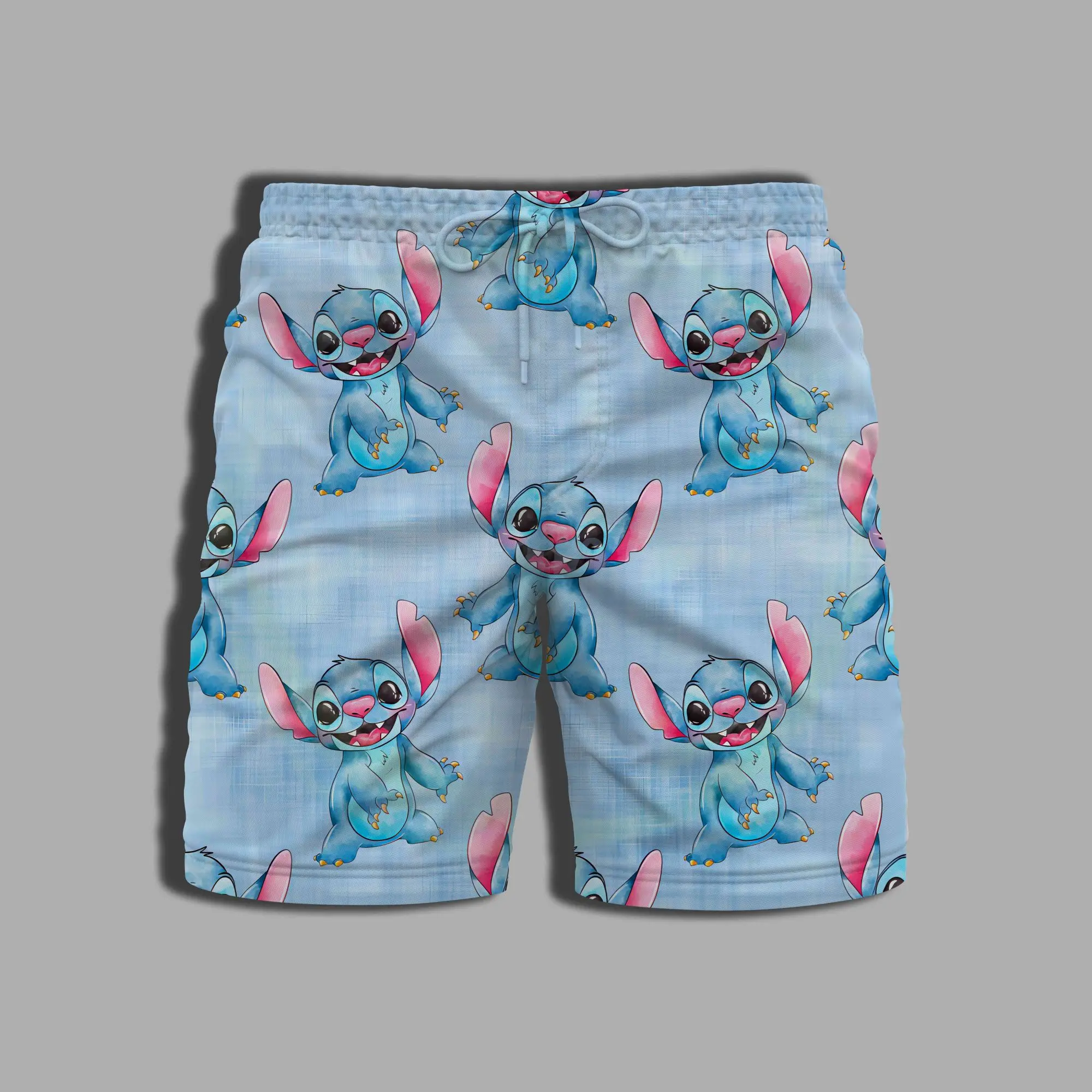 Summer Men’s Shorts Disney Stitch Shorts 3D Printing Swimming Trunks Beach Quick-drying Men’s Shorts New Hawaii Men’s Clothing