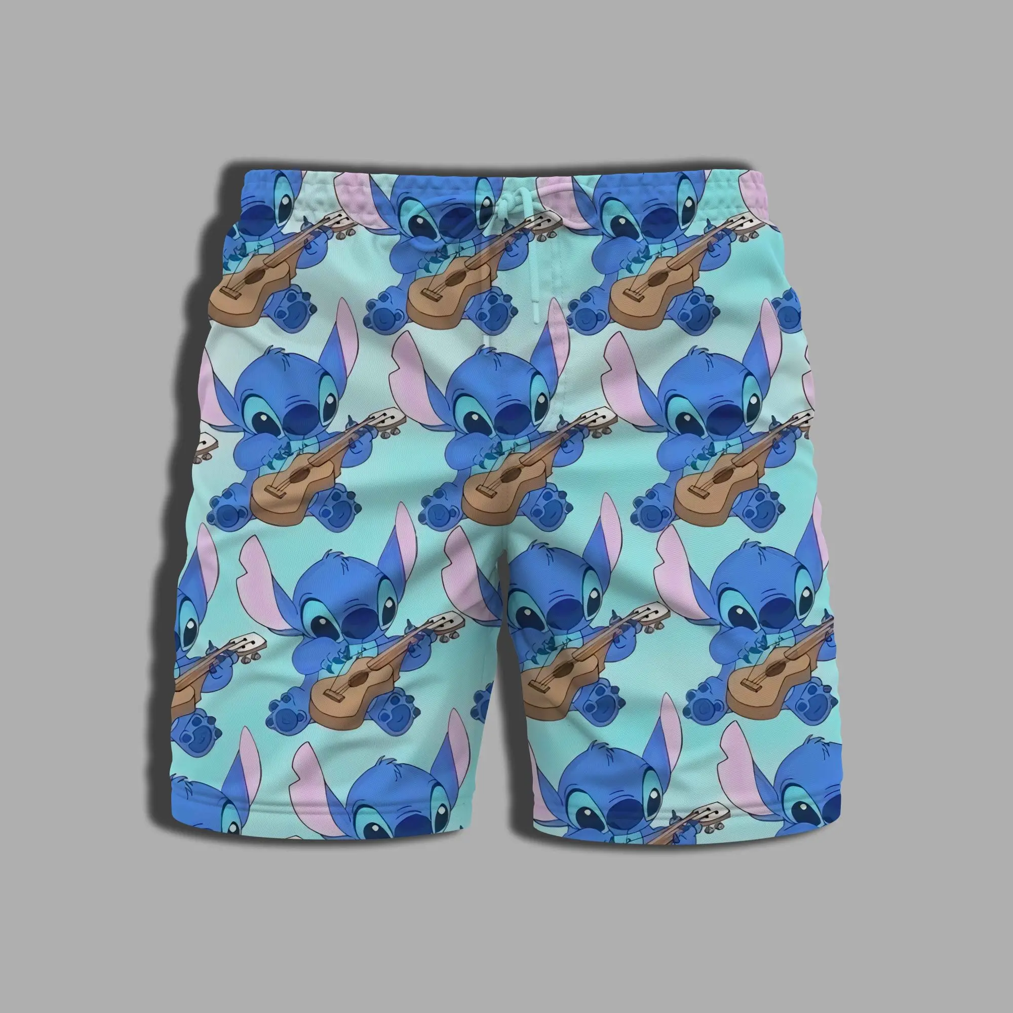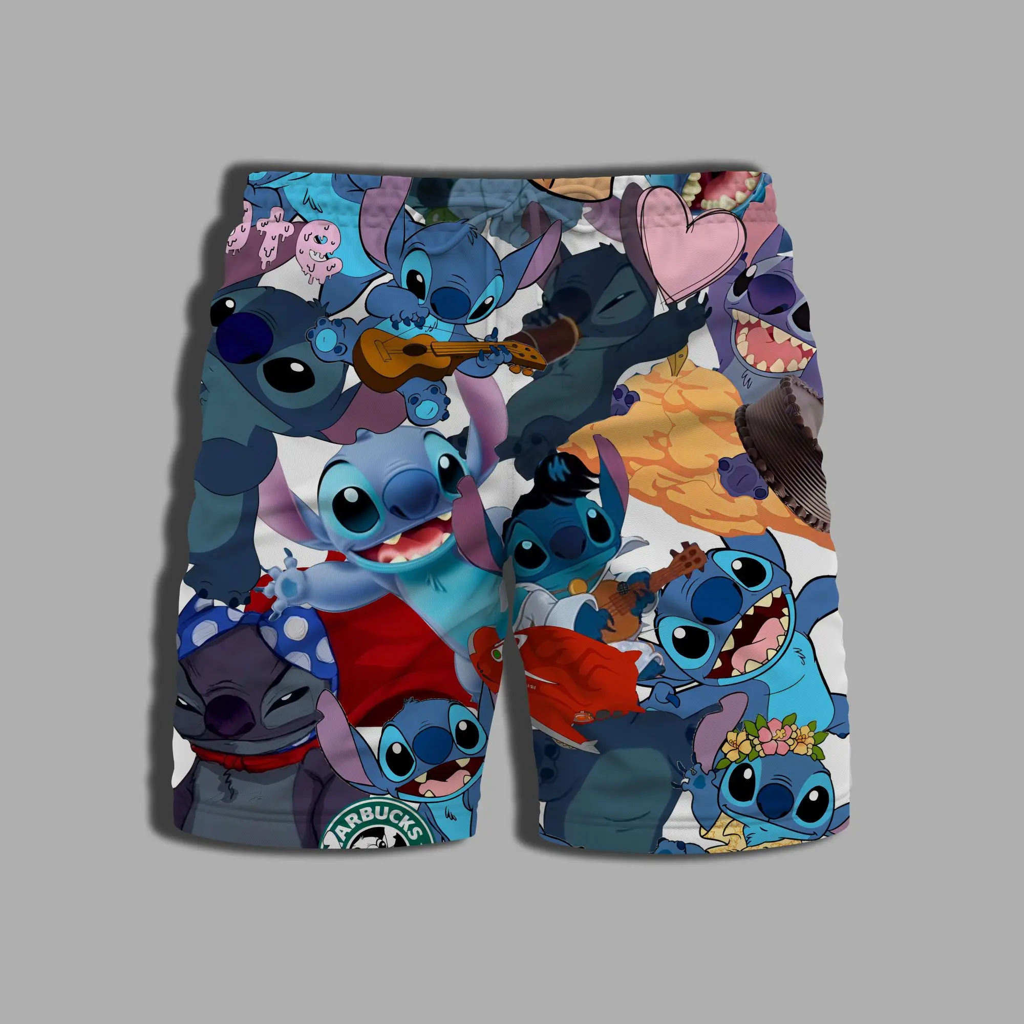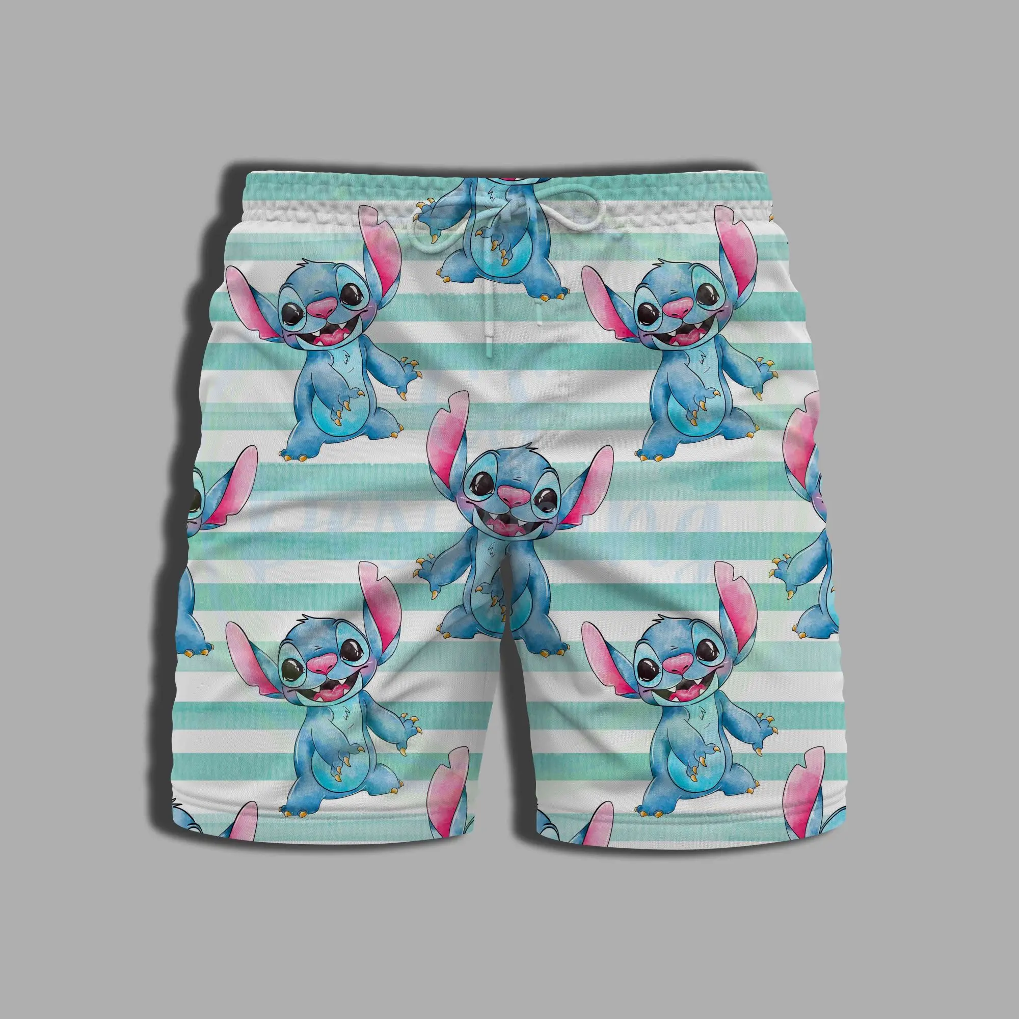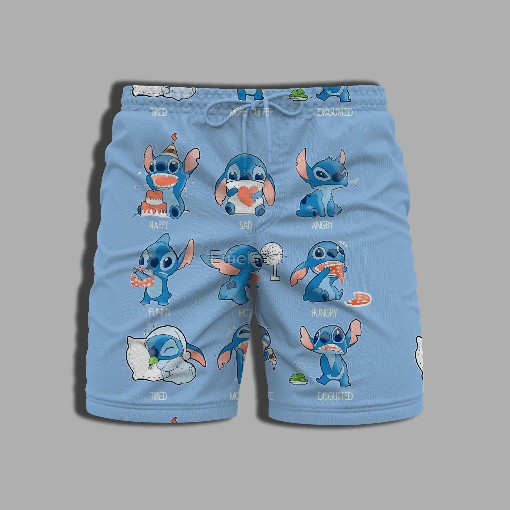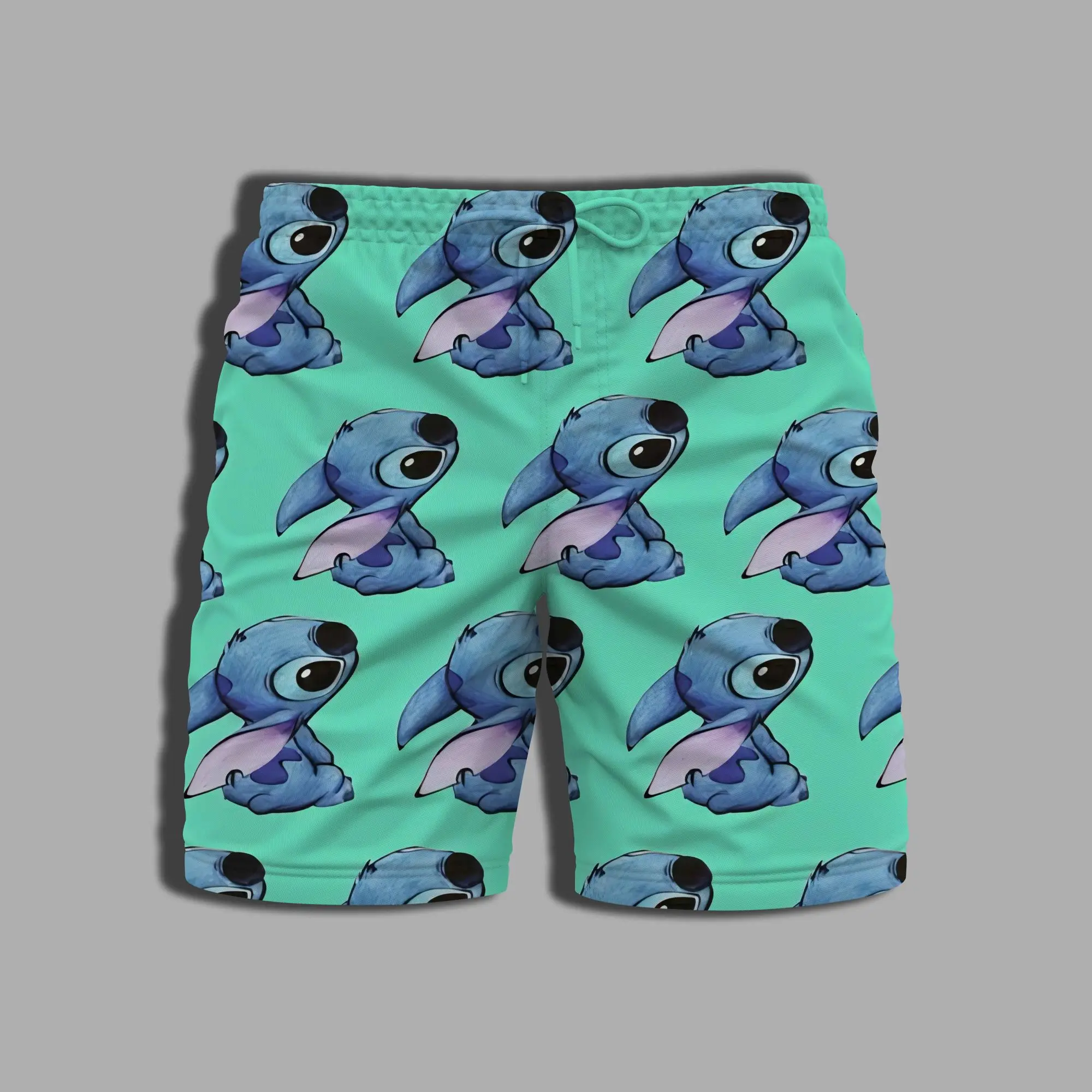 Summer Men’s Shorts Disney Stitch Shorts 3D Printing Swimming Trunks Beach Quick-drying Men’s Shorts New Hawaii Men’s Clothing