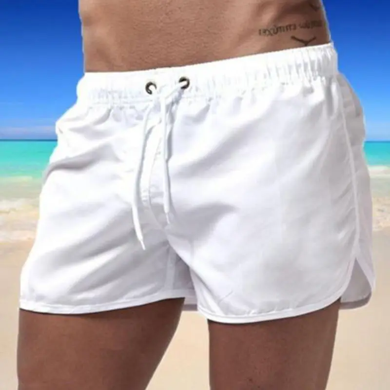 Summer Men’s Swimming Shorts Fast-drying Drawstring Beach Pants Running Fitness Sports Breath Waterproof Three-point Pants